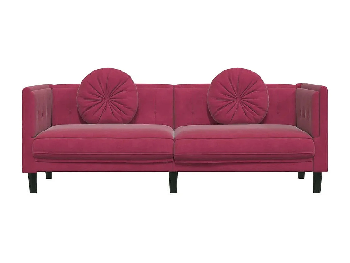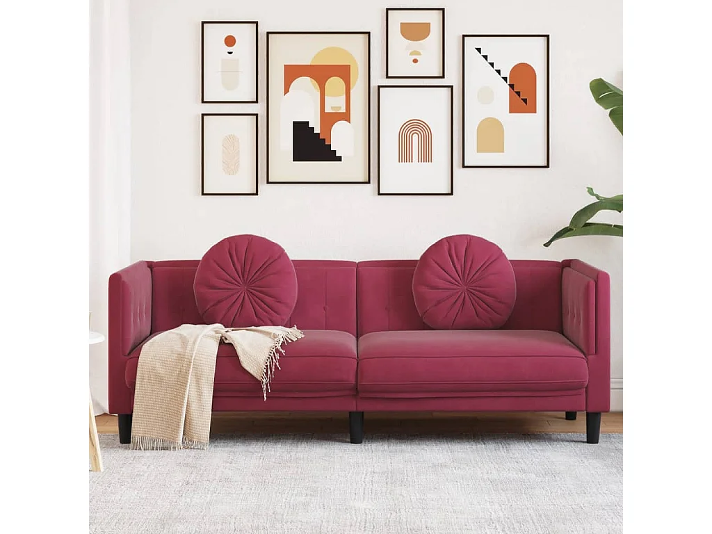 Divano con Cuscini 3 Posti Rosso Vino in Velluto