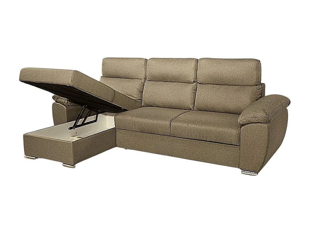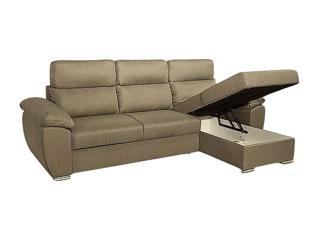 Divano con penisola contenitore cappuccino ComoII tessuto giulia9703