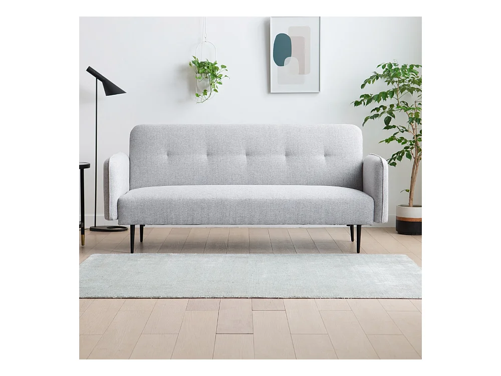 Divano letto Jordi, Divano letto a 3 posti con piedini in metallo nero , Sofà da soggiorno in tessuto imbottito con apertura click-clack, 190x87h97 cm, Grigio
