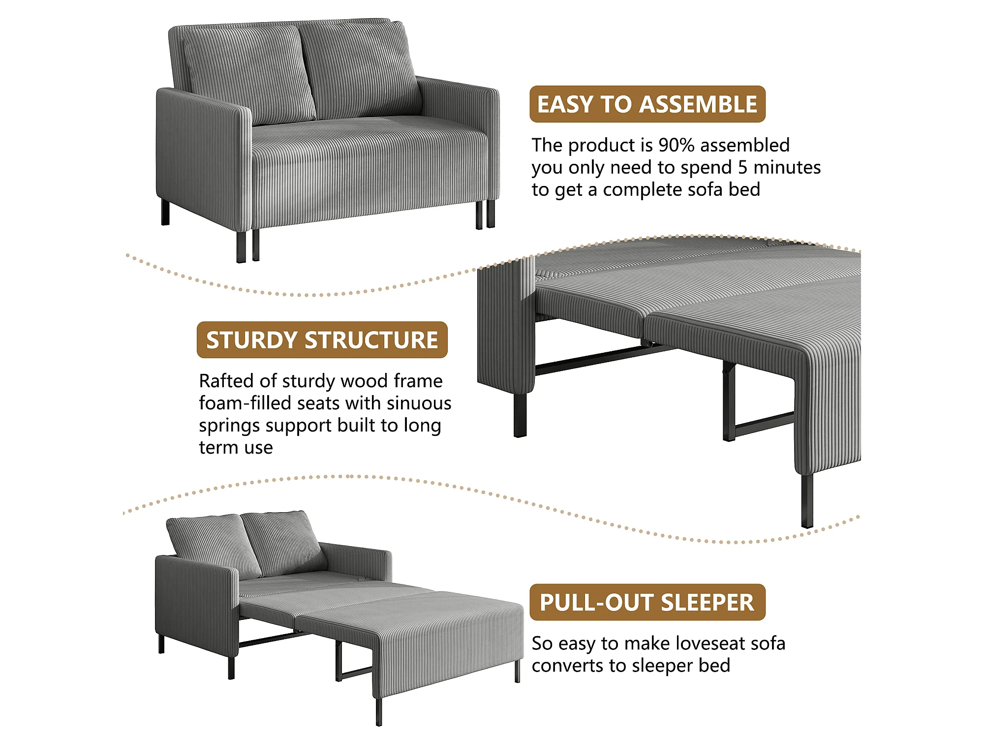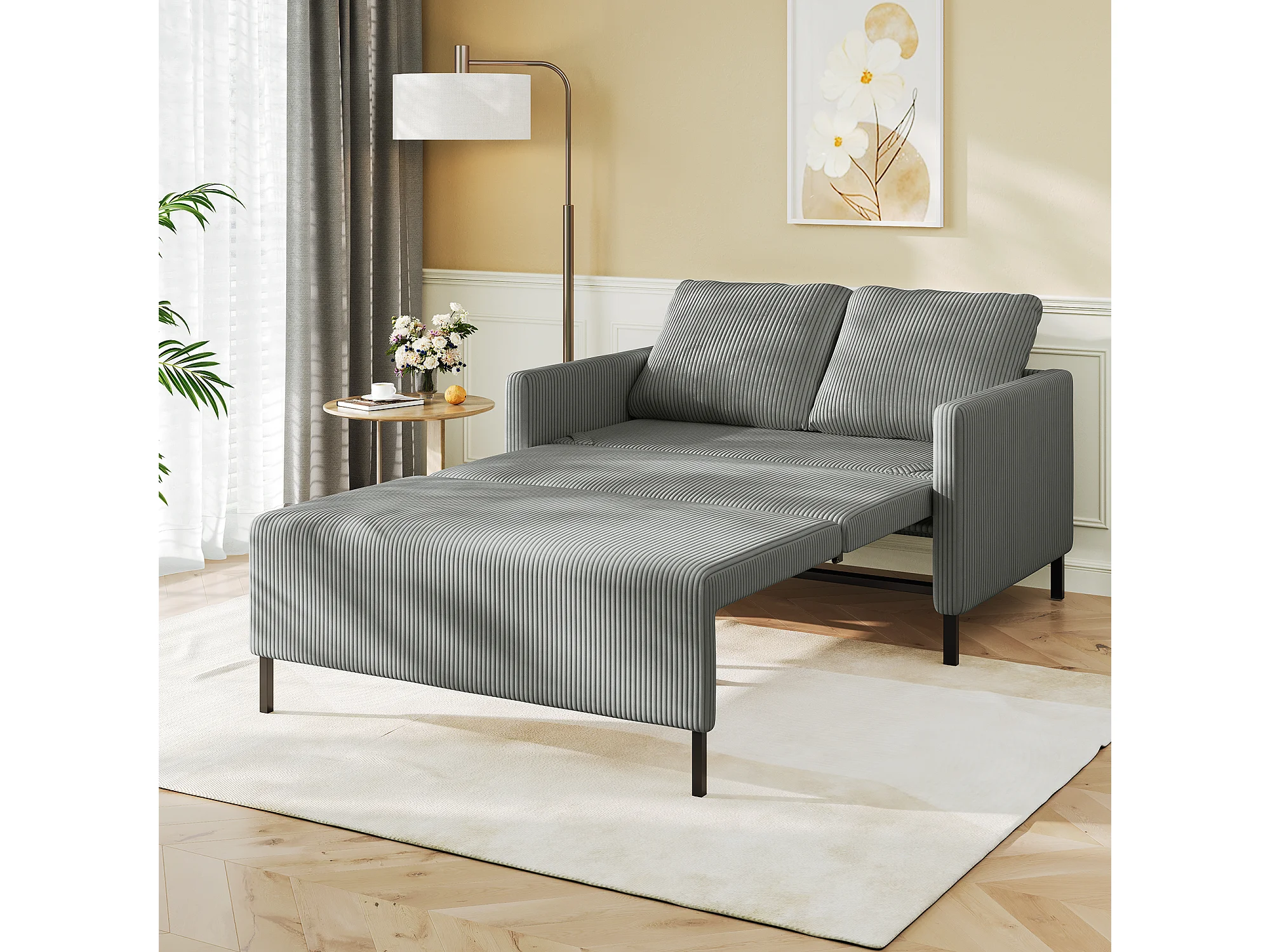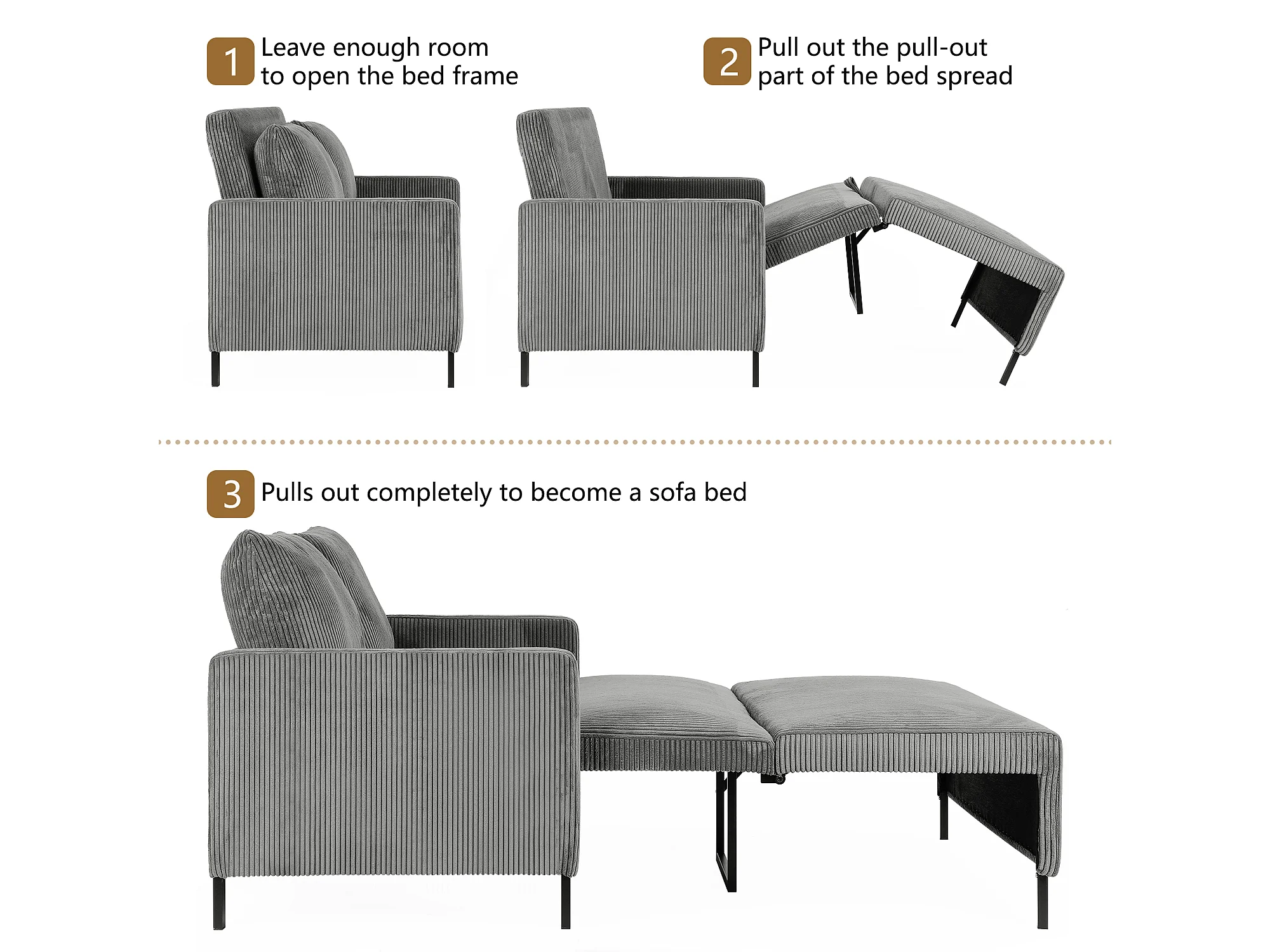 Divano convertibile a 2 posti Click-click, in velluto a coste grigio, sonno 170 cm, materasso da 10 cm, per studio/soggiorno/camera da letto