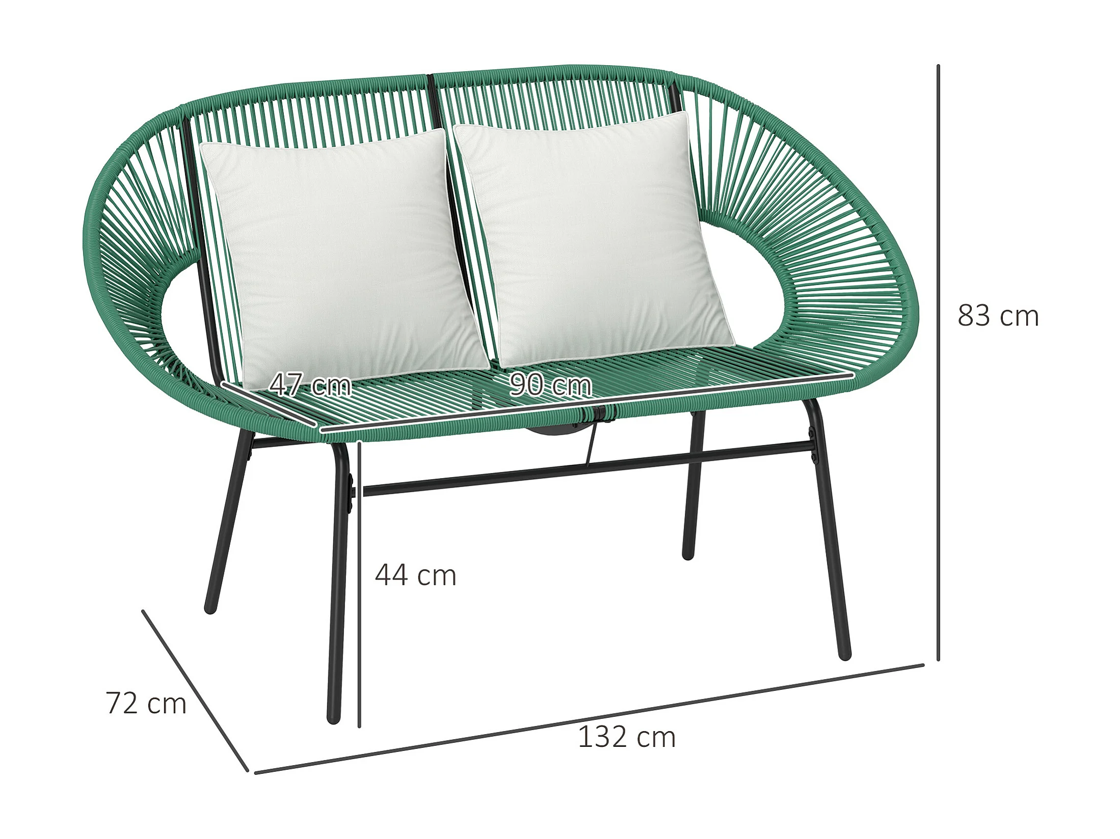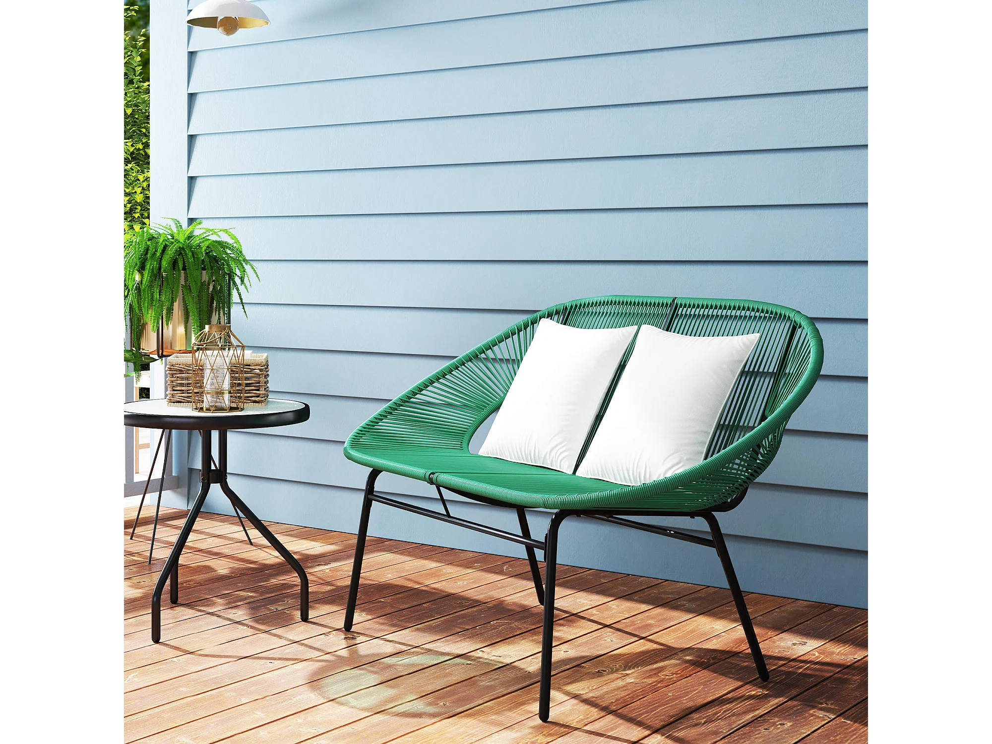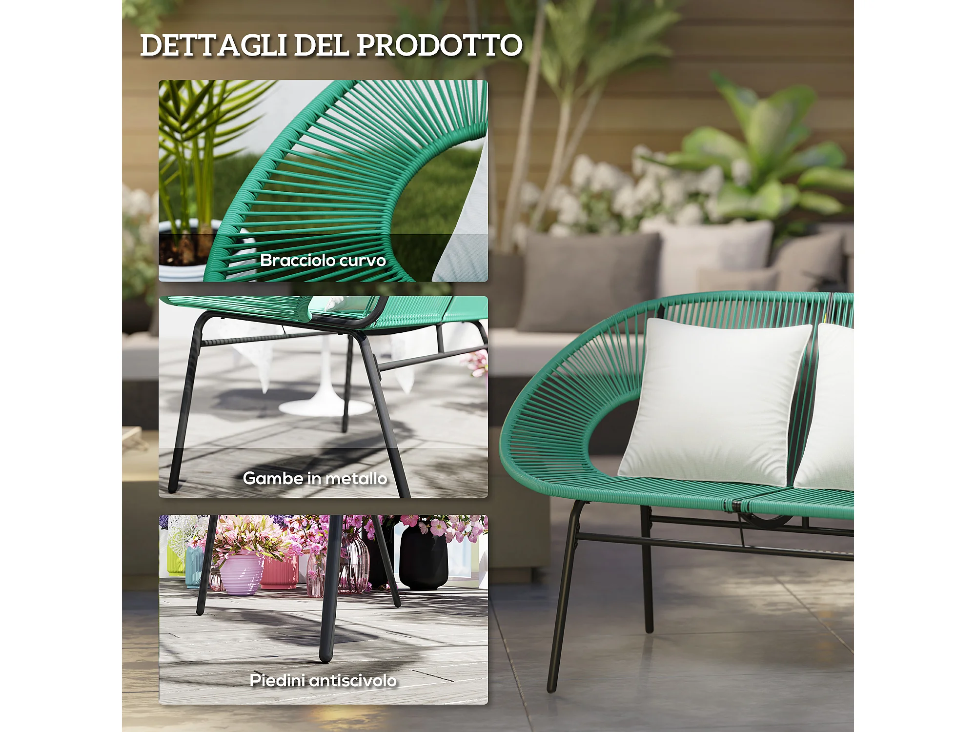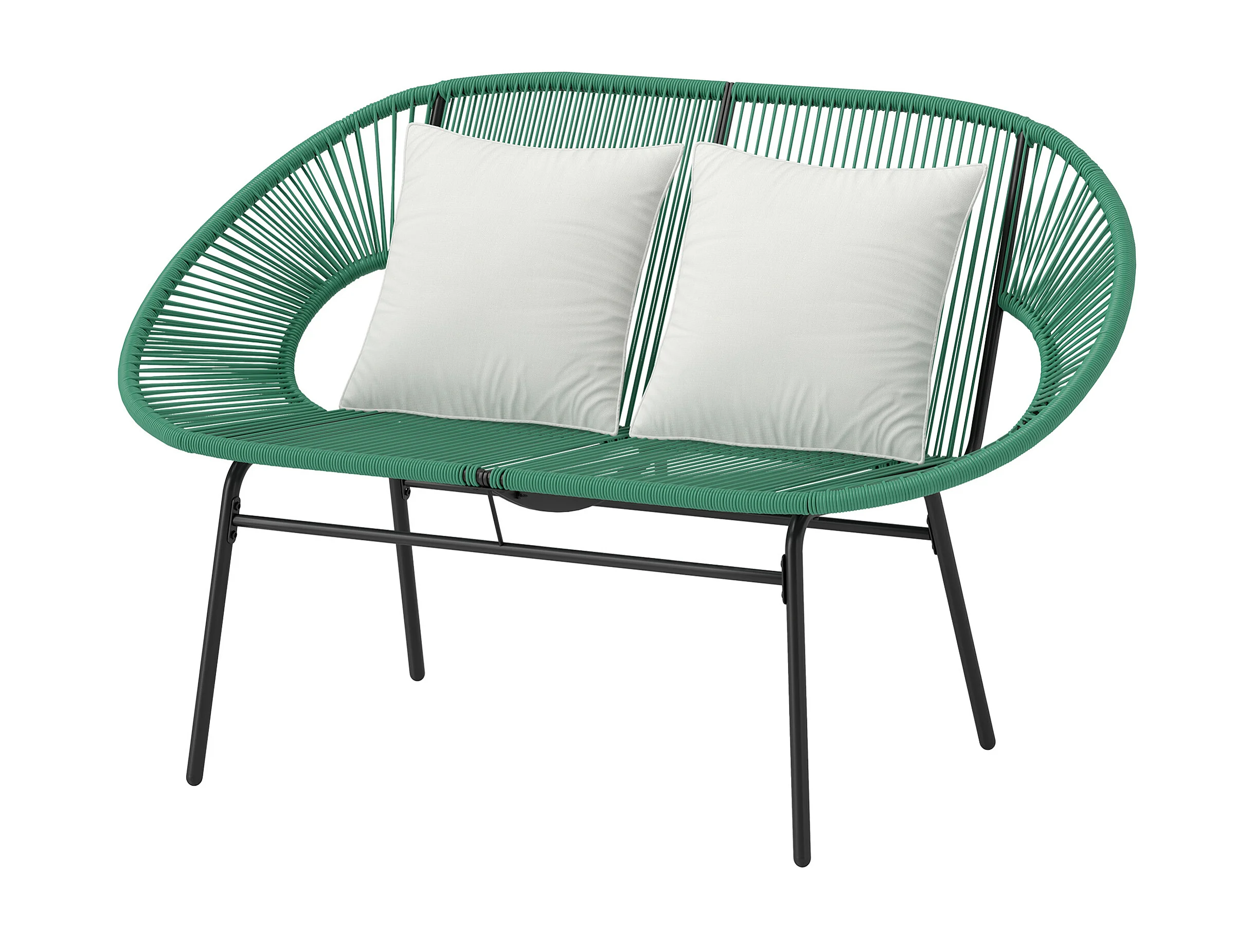 Divano da giardino 2 posti con cuscini in rattan pe e acciaio verde