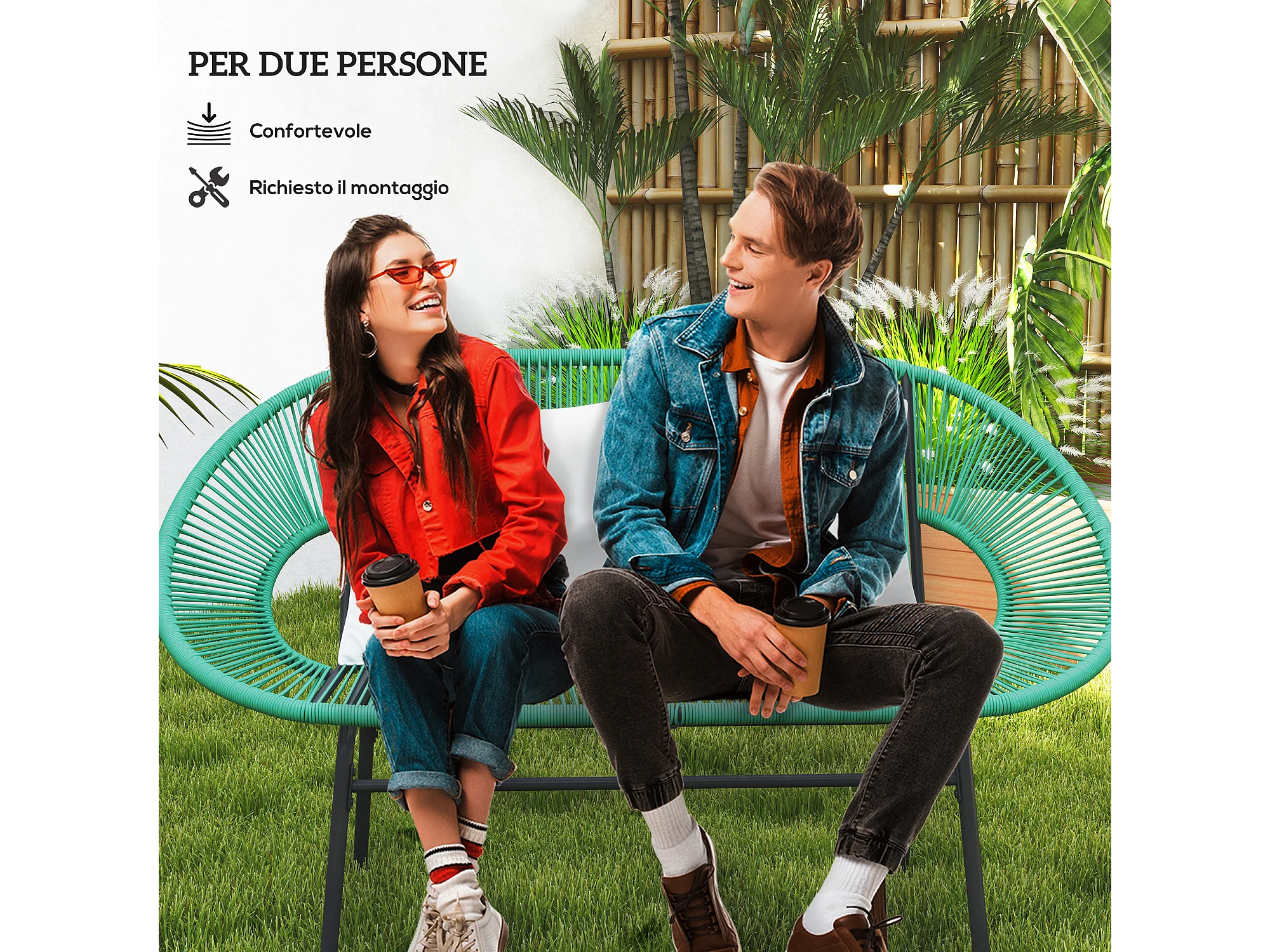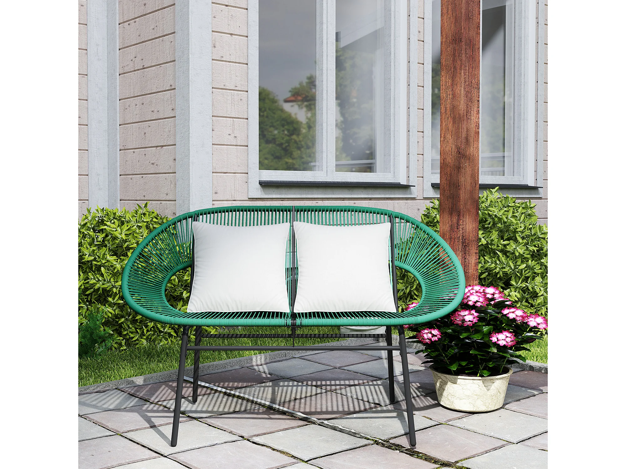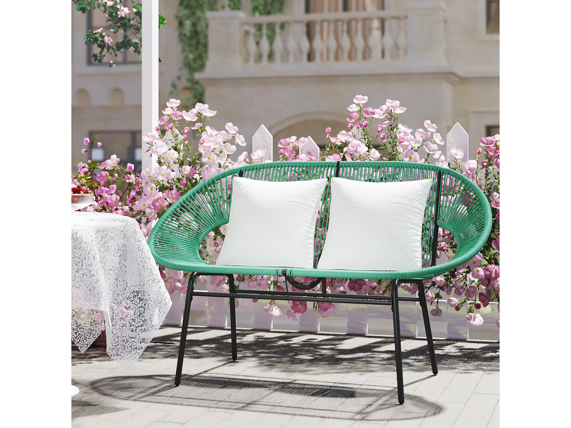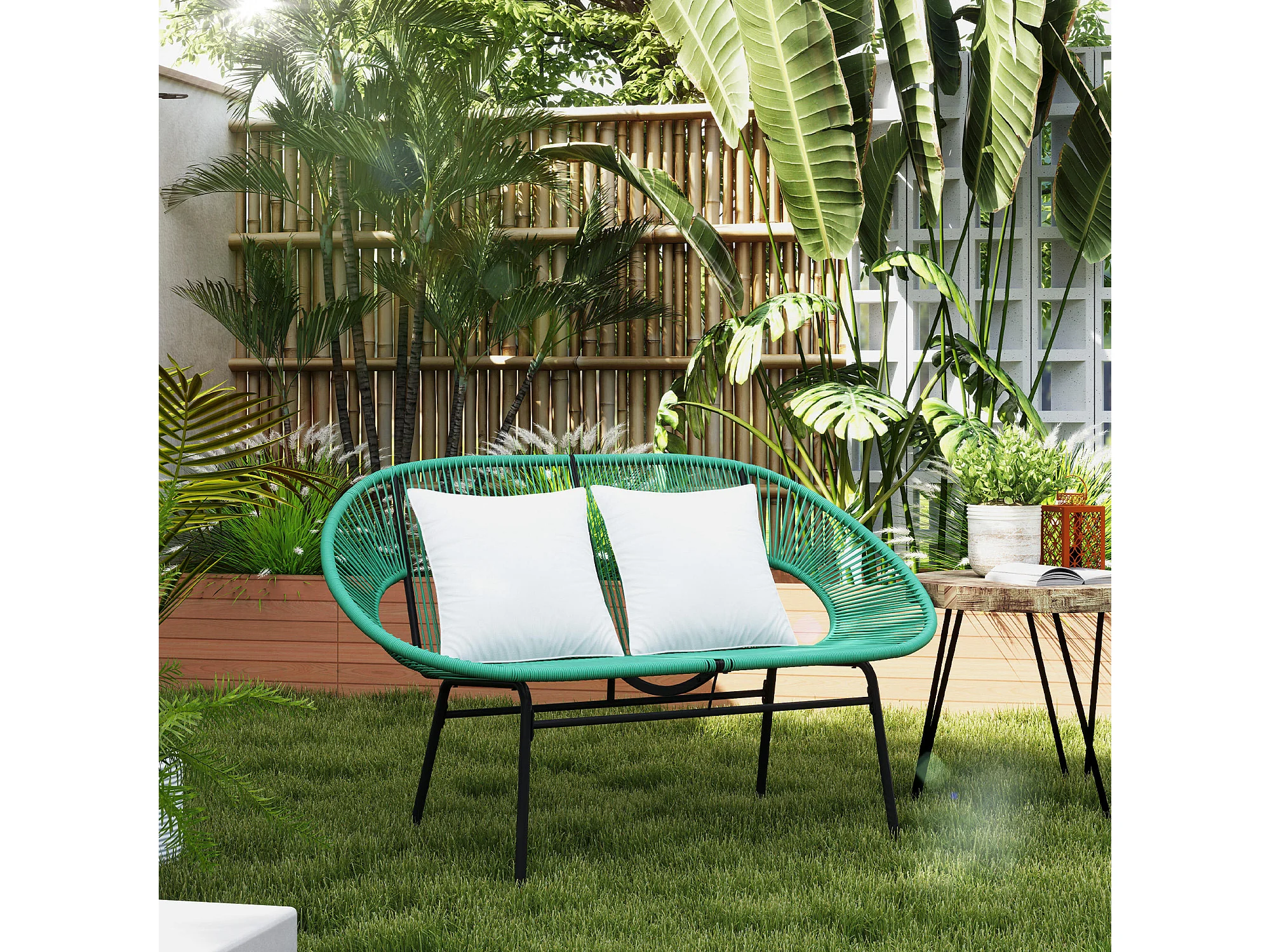 Divano da giardino 2 posti con cuscini in rattan pe e acciaio verde