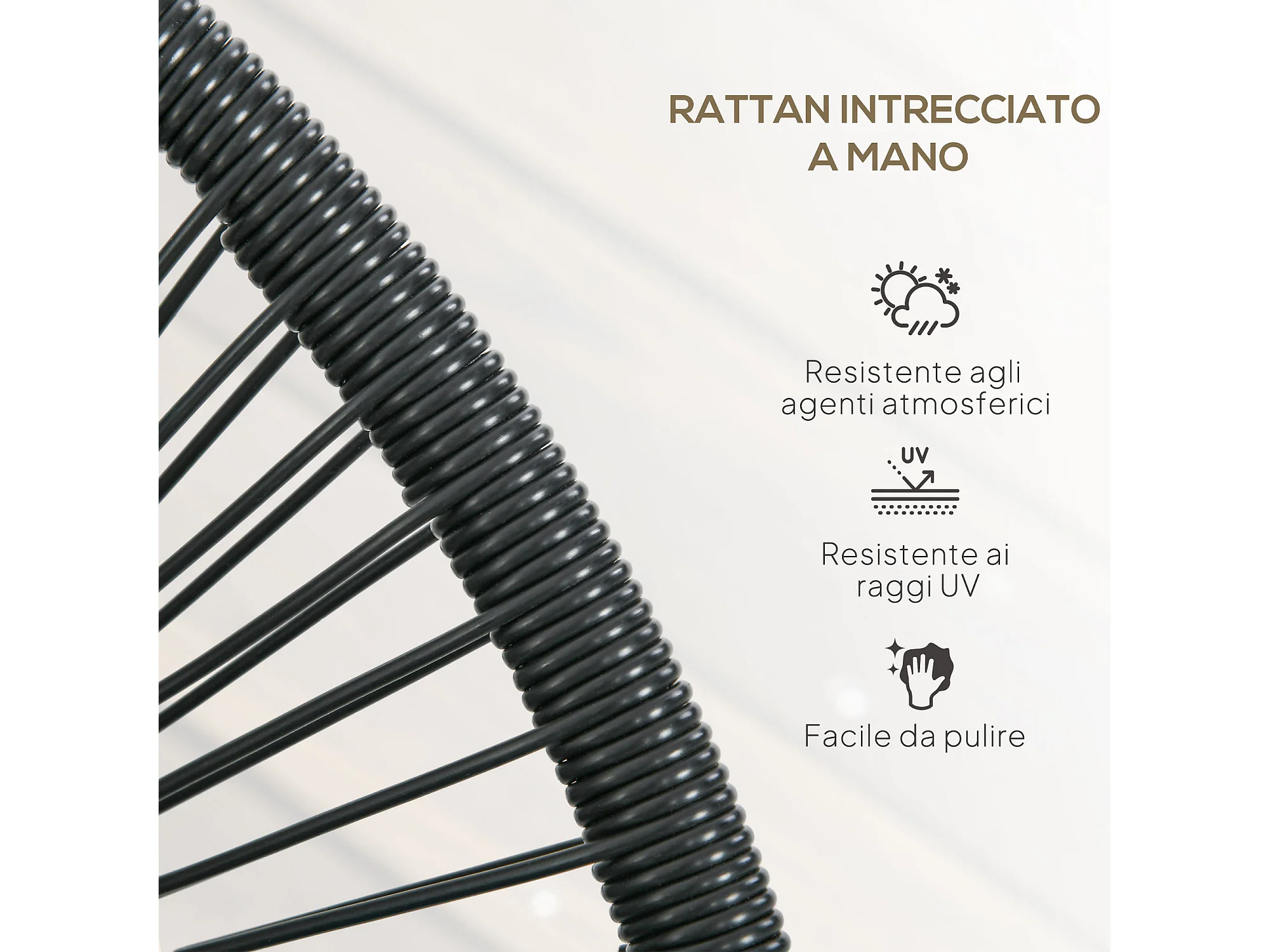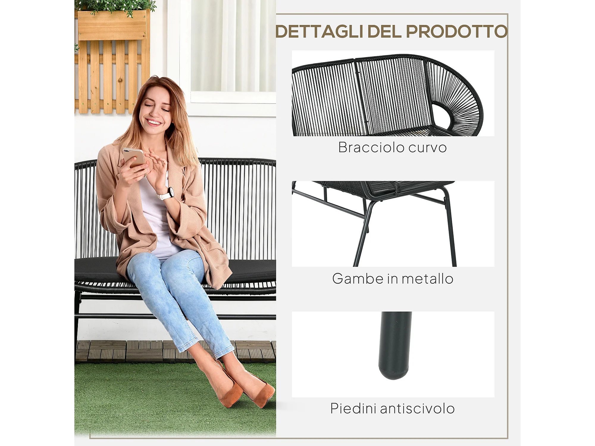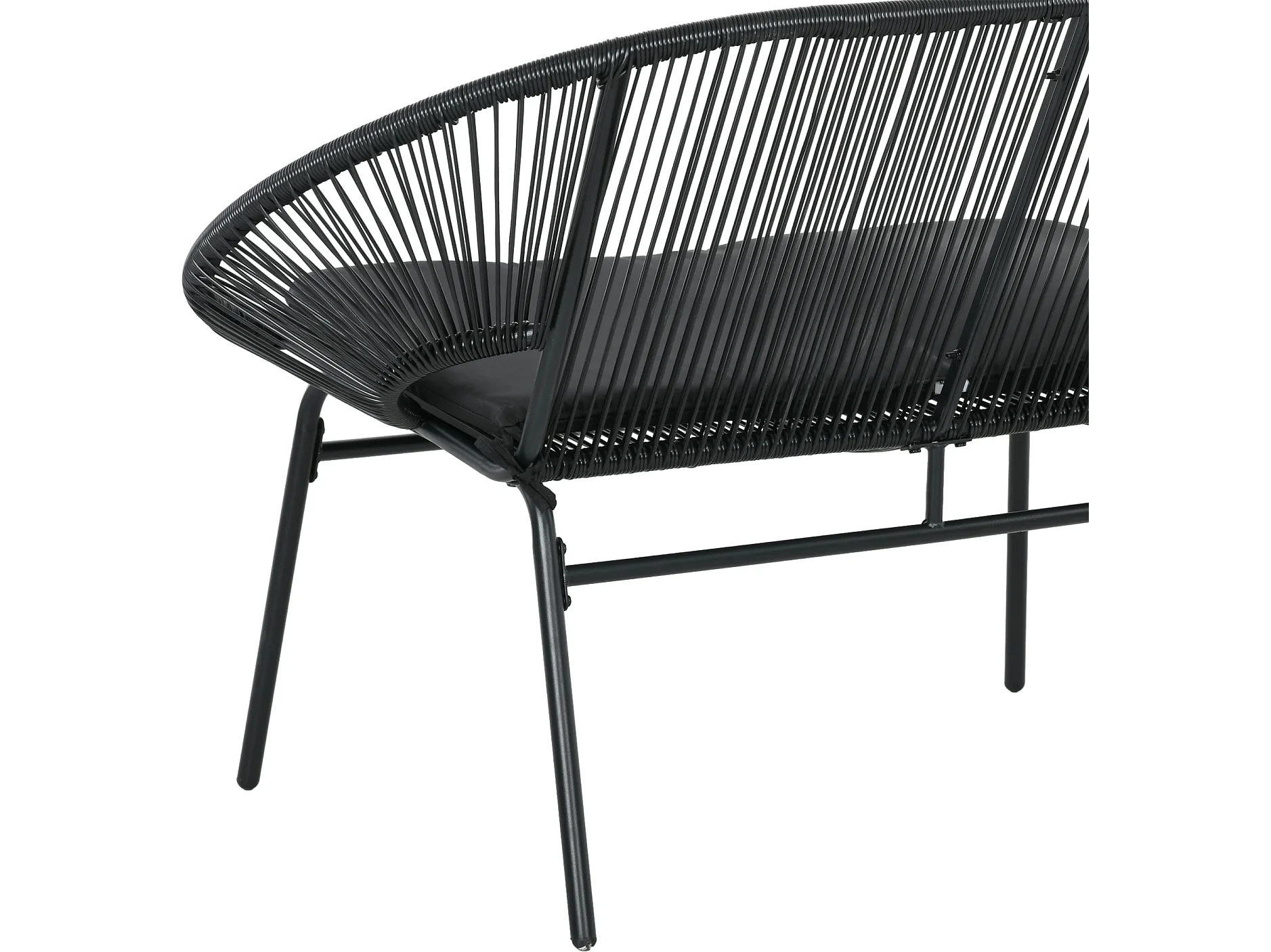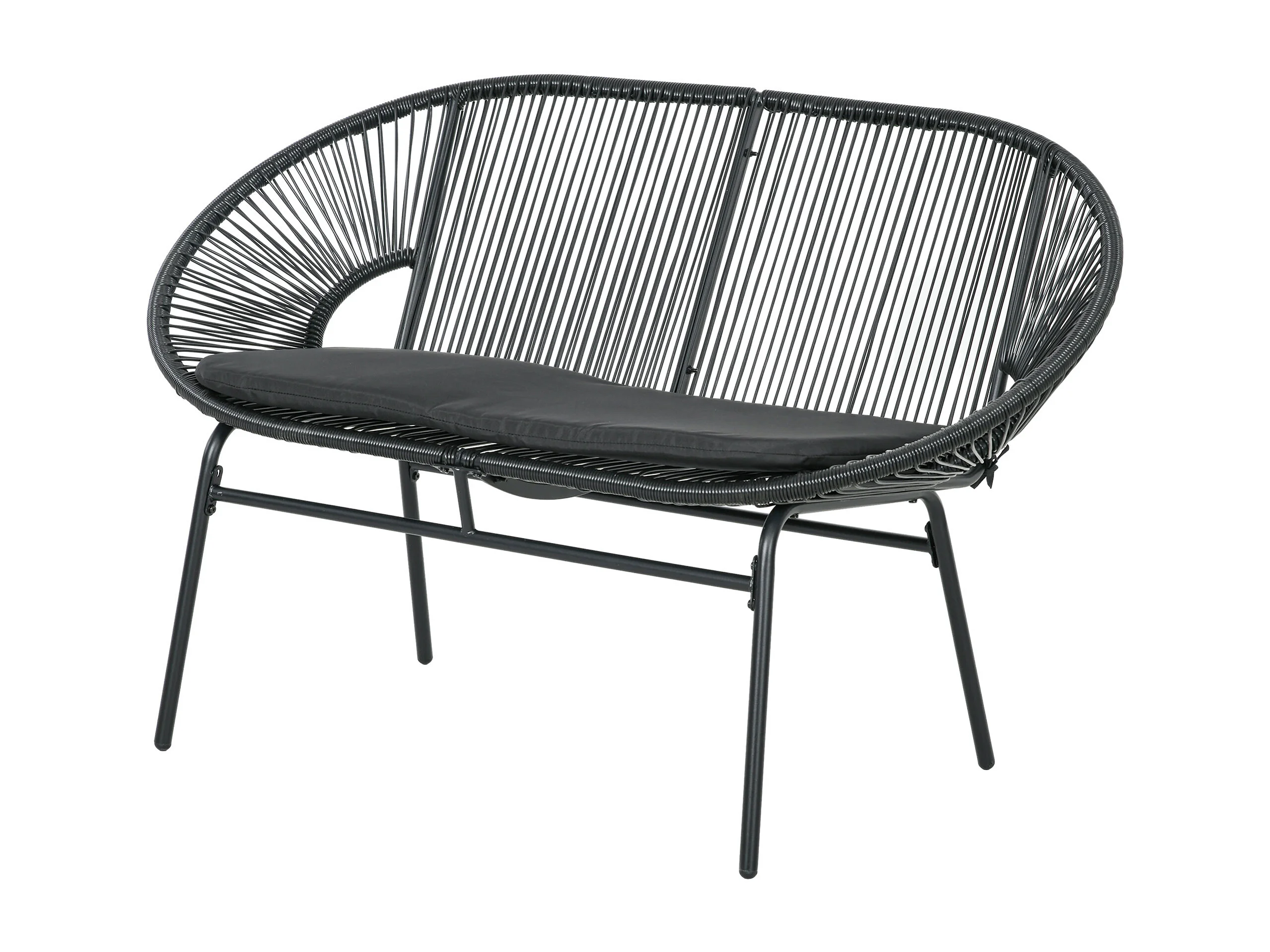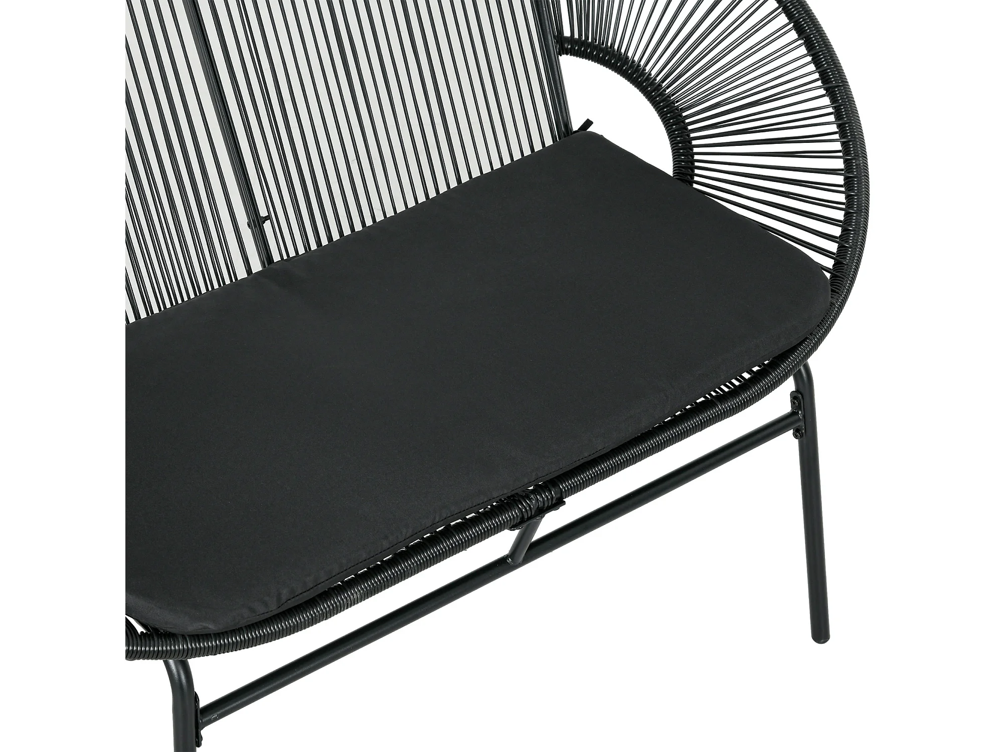 Divano da giardino 2 posti in rattan pe con cuscini nero