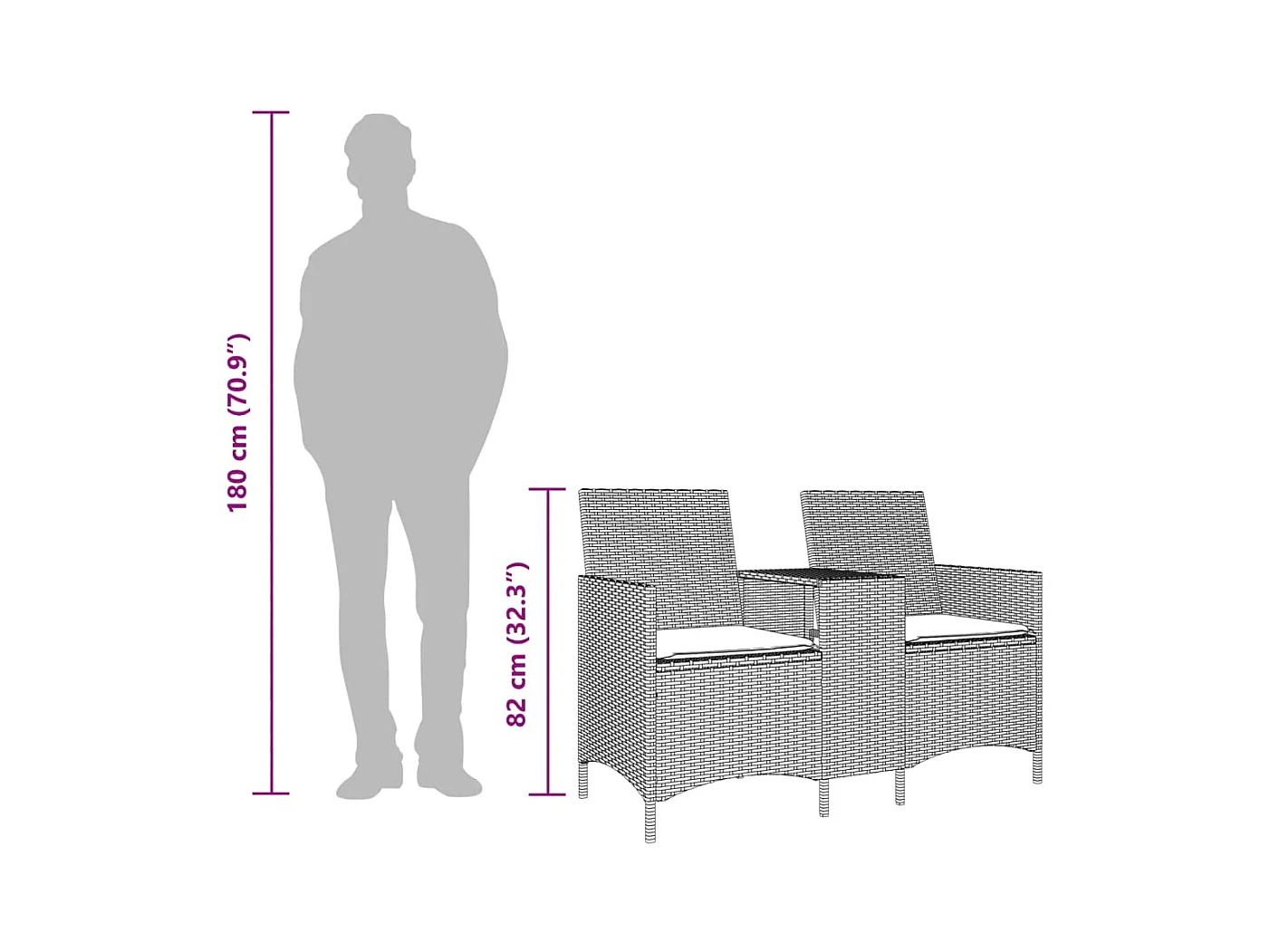 Divano da giardino a 2 posti con tavolino e cuscini in resina intrecciata