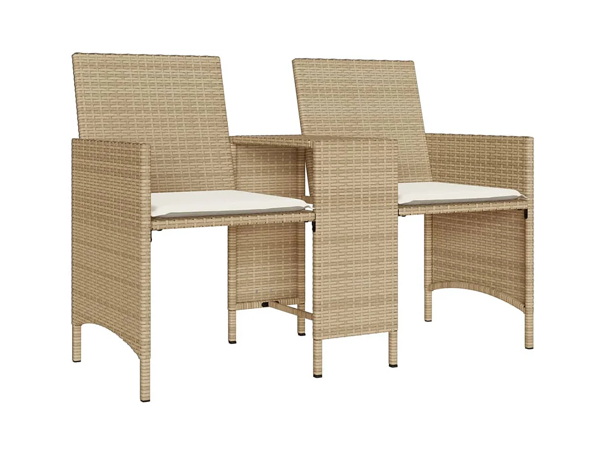 Divano da giardino a 2 posti con tavolo e sgabelli in rattan beige