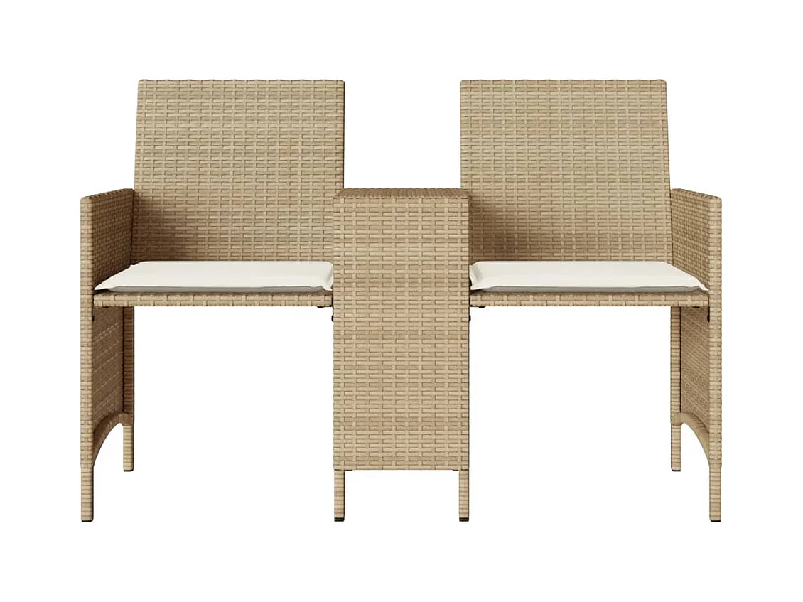 Divano da giardino a 2 posti con tavolino e cuscini in resina intrecciata