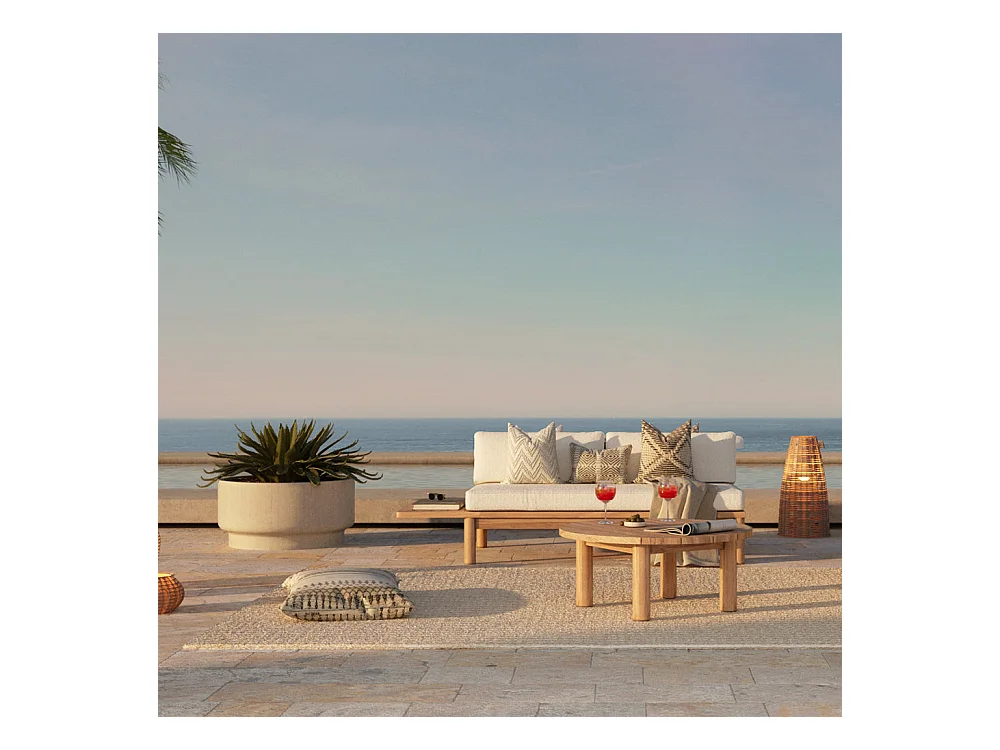 Divano da giardino a 2 posti in legno massiccio di teak e tessuto - Nadila