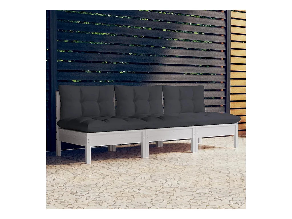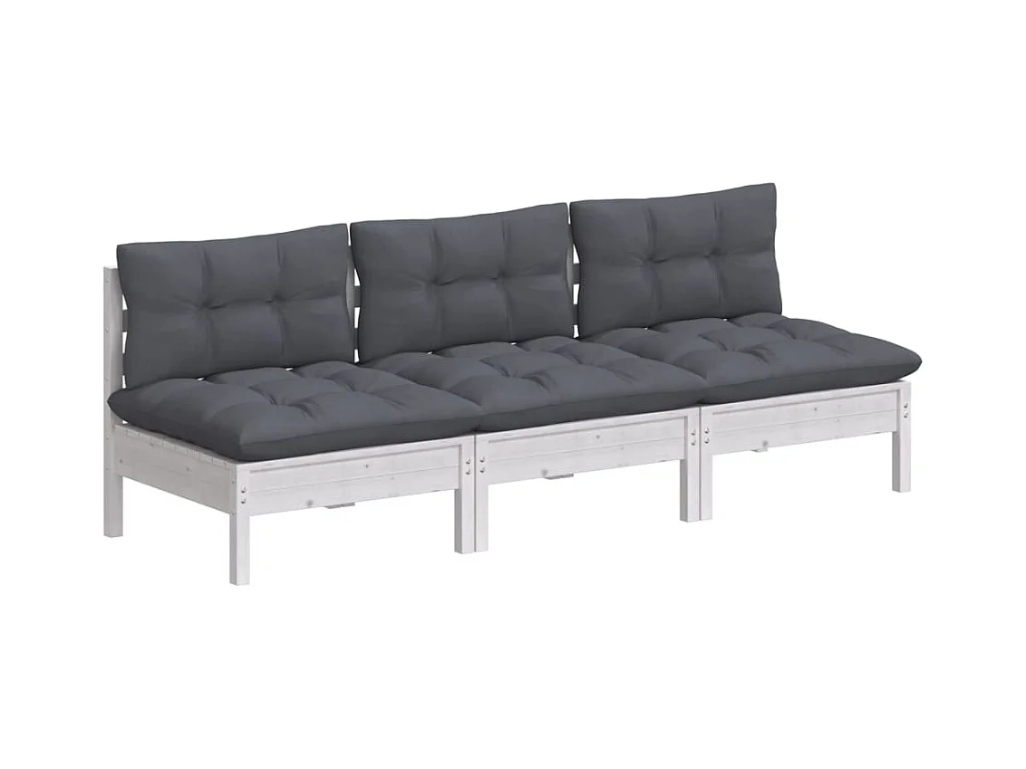Divano da giardino a 3 posti con cuscini antracite Legno di pino