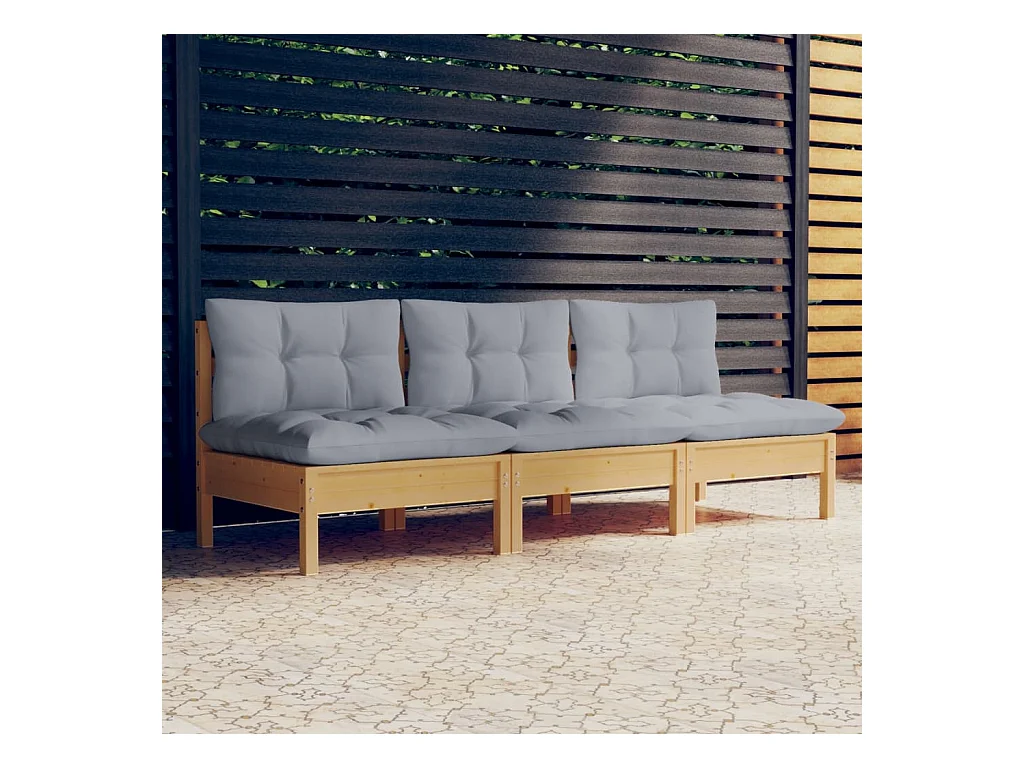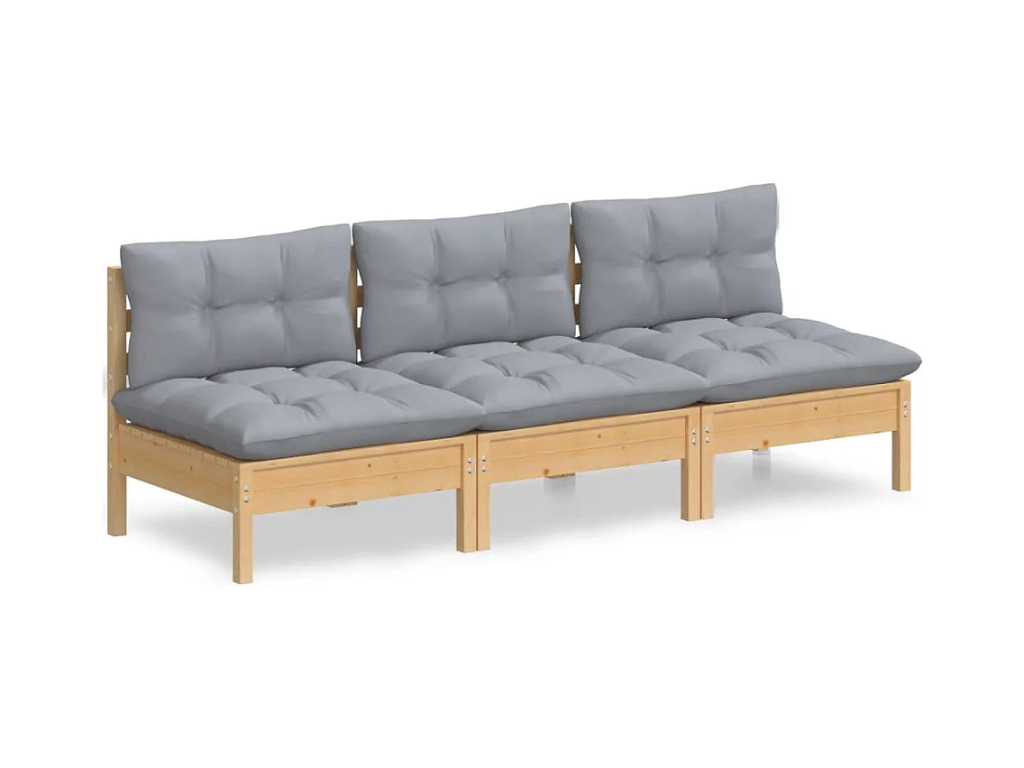 Divano da Giardino a 3 Posti con Cuscini Grigi Massello di Pino