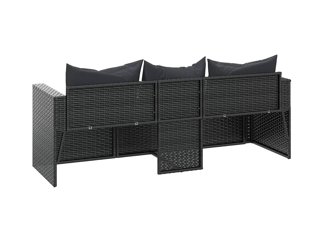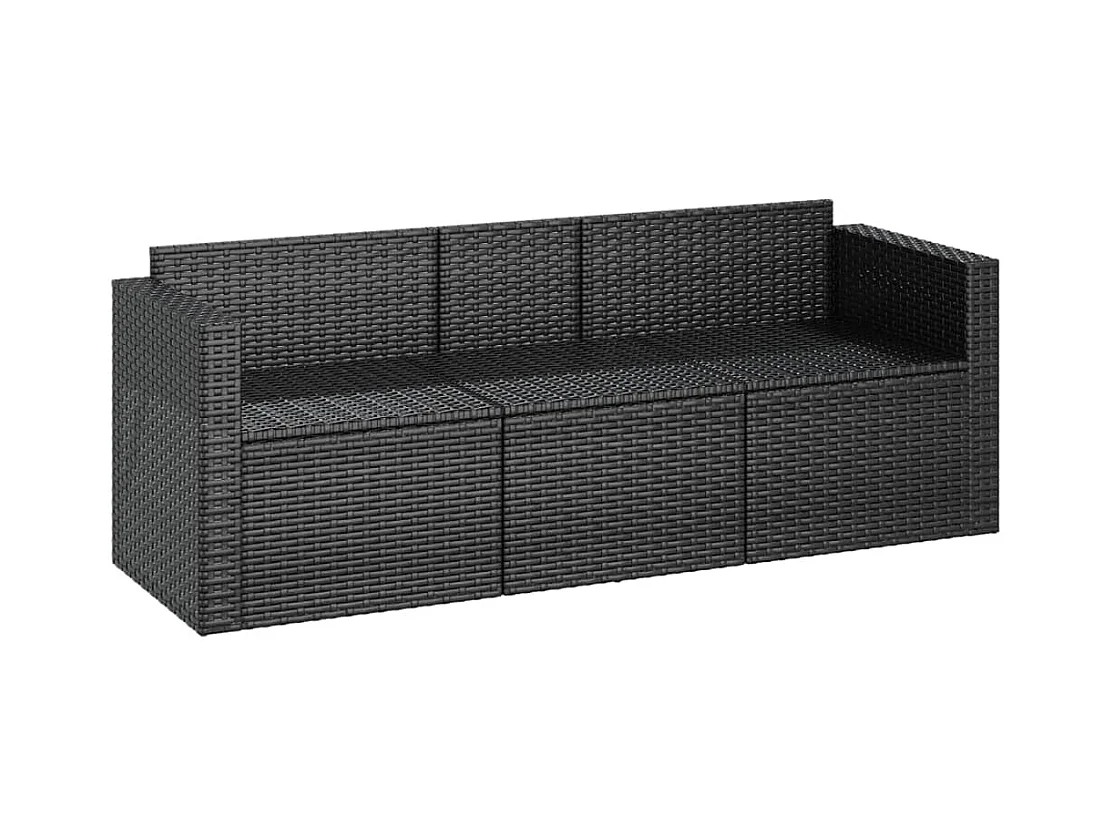 Divano da giardino a 3 posti con cuscini in resina intrecciata nera