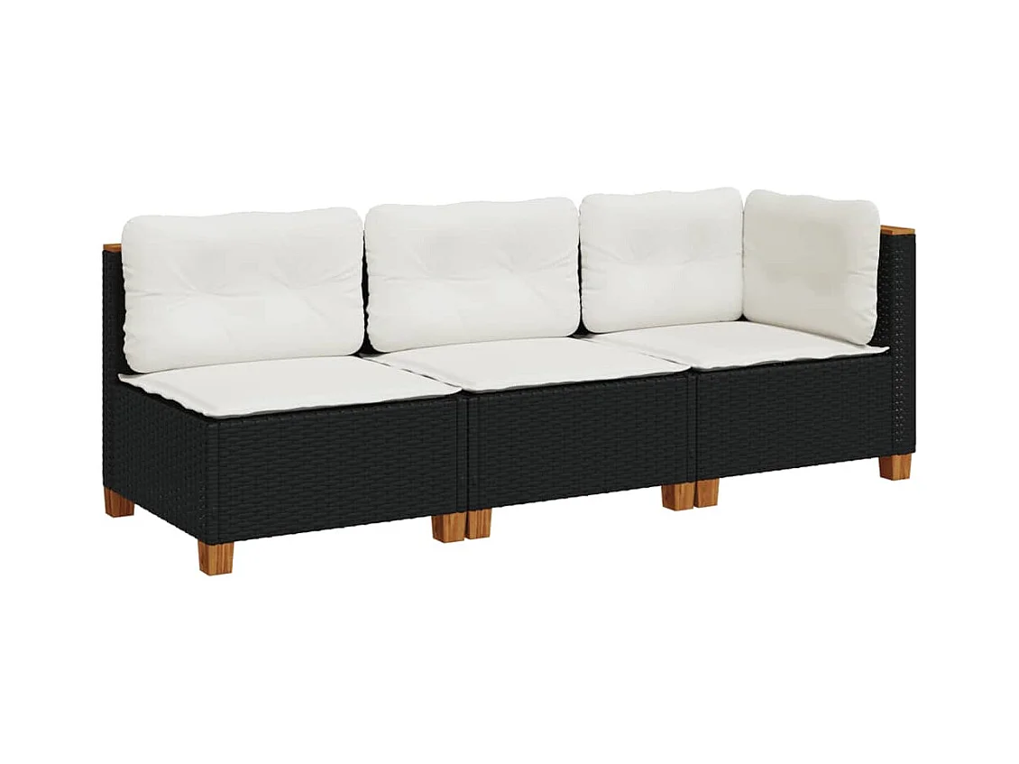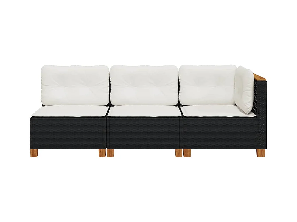 Divano Giardino Senza Braccioli con Cuscini Nero in Polyrattan