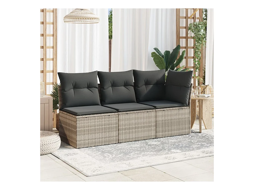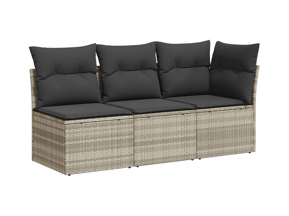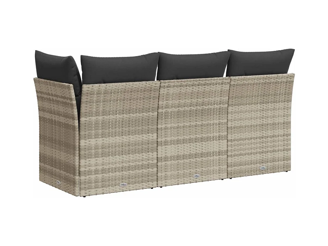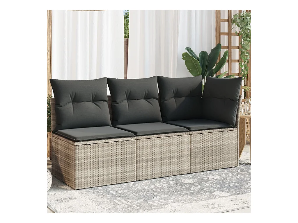 Divano da giardino a 3 posti grigio chiaro e cuscini in resina intrecciata