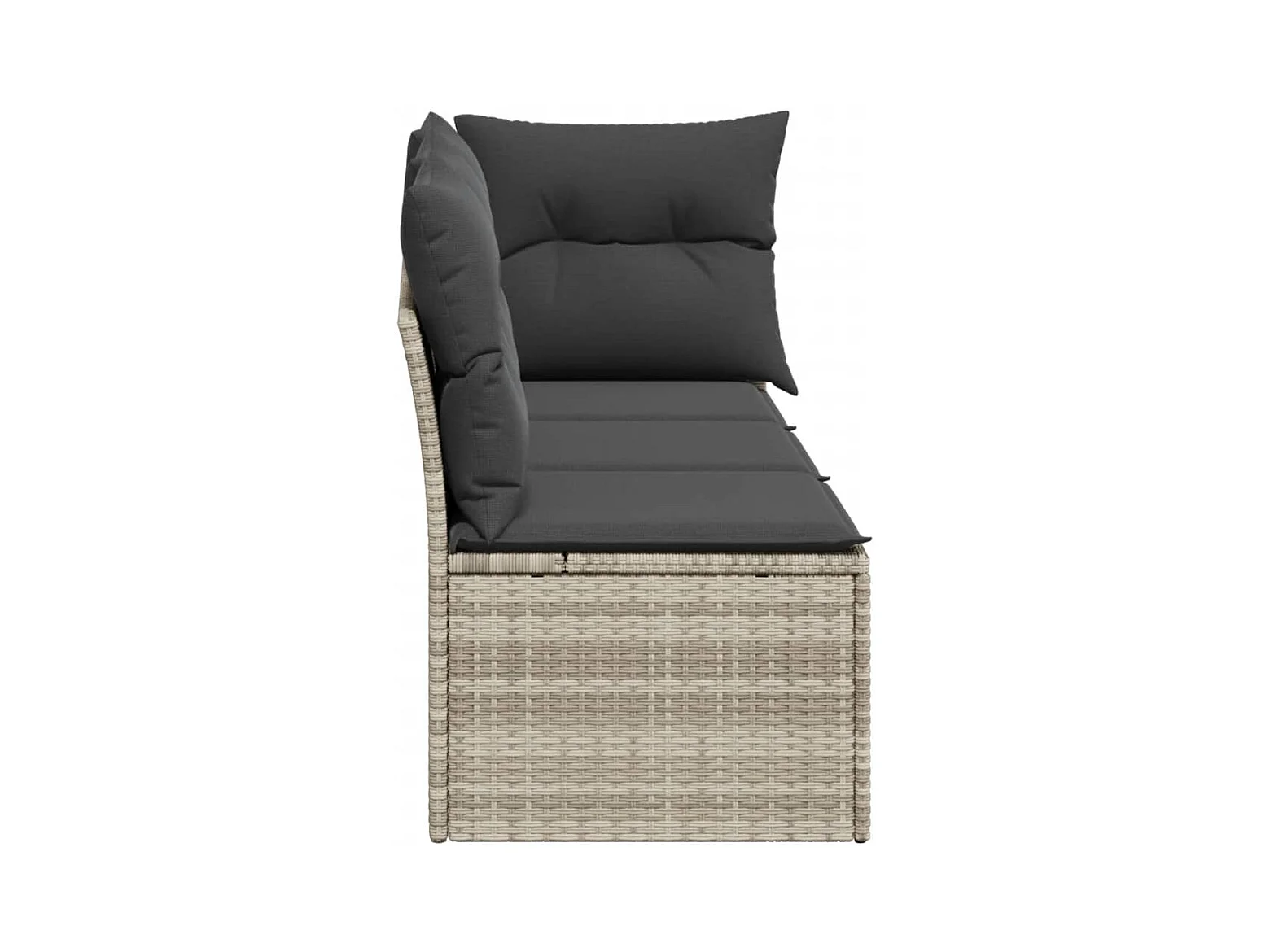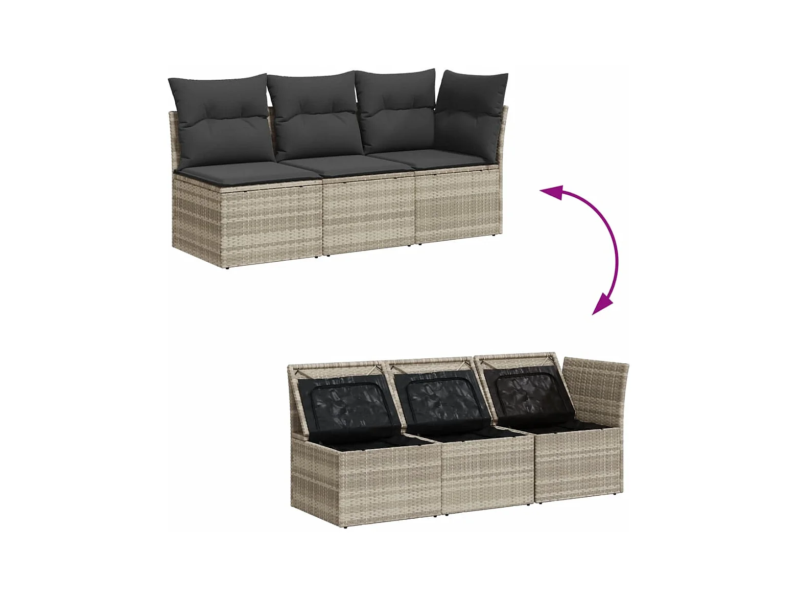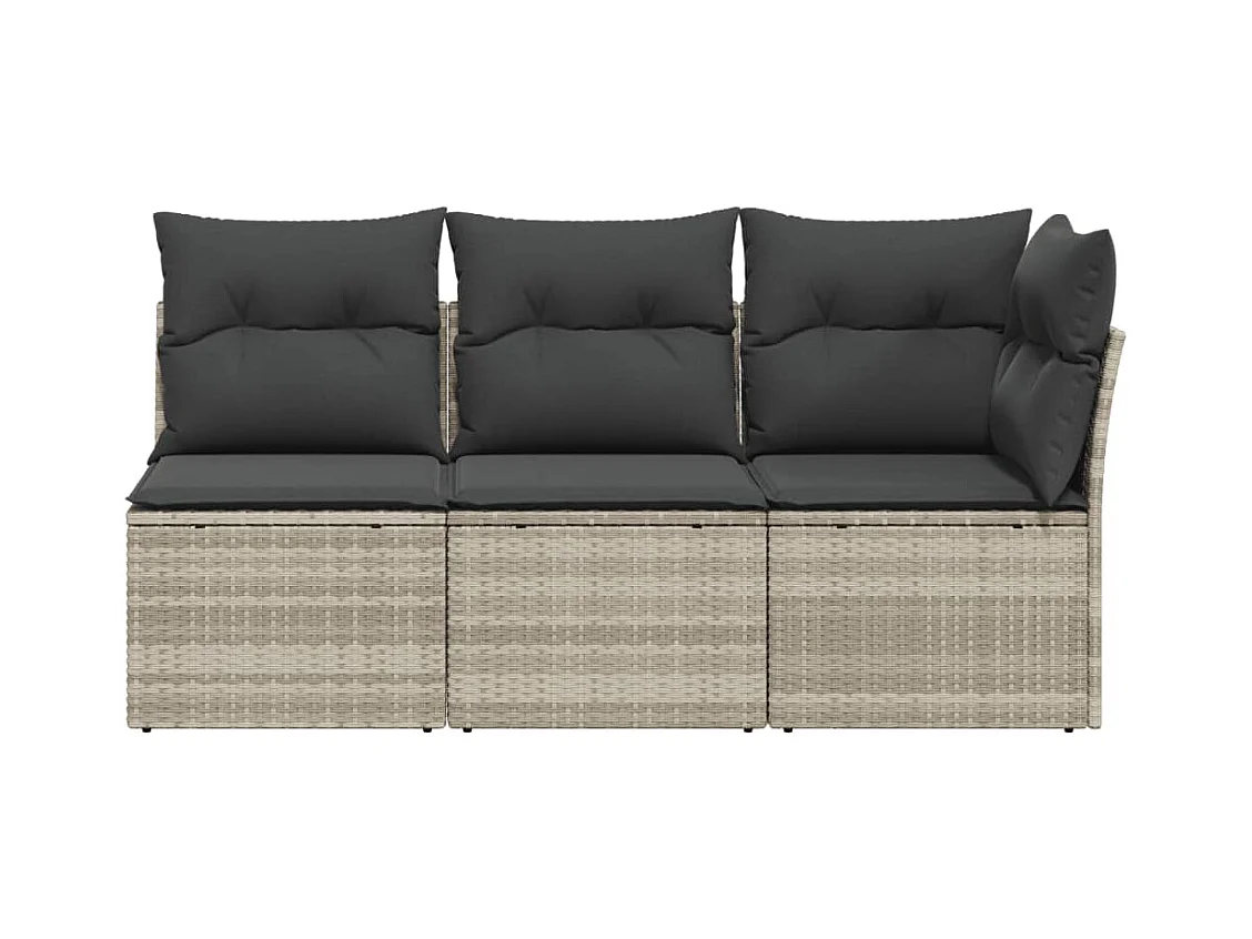 Divano da giardino a 3 posti grigio chiaro e cuscini in resina intrecciata