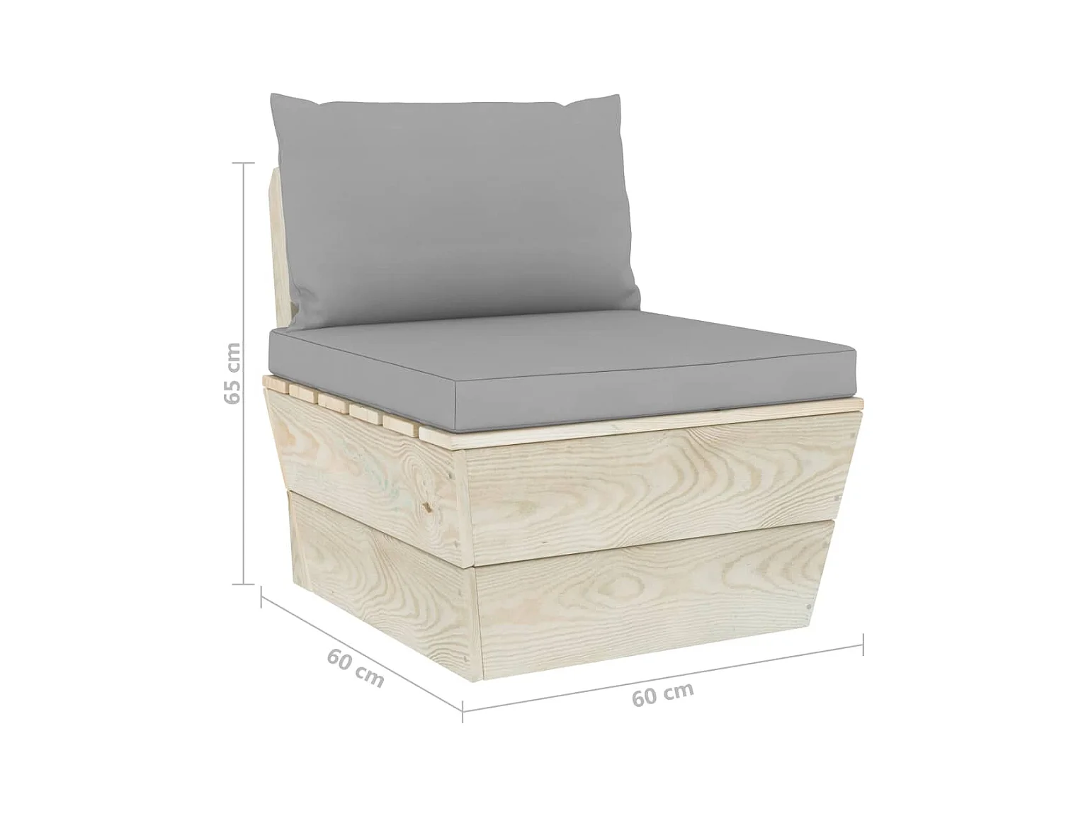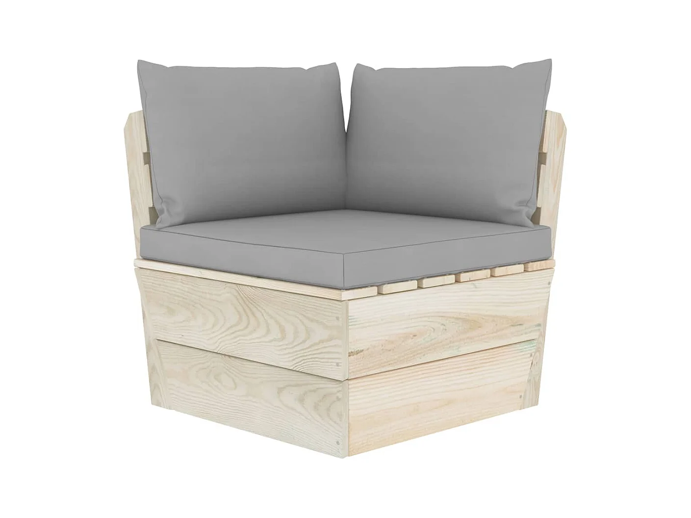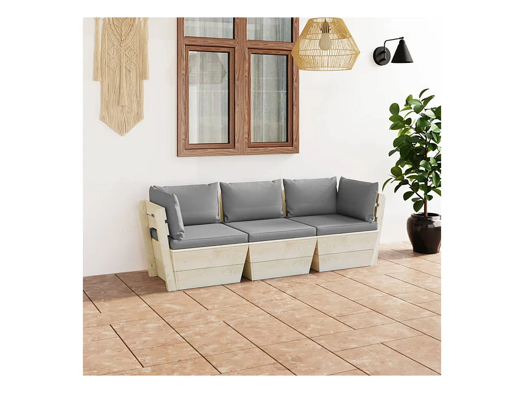 Divano da Giardino a 3 Posti con Cuscini Grigi Massello di Pino