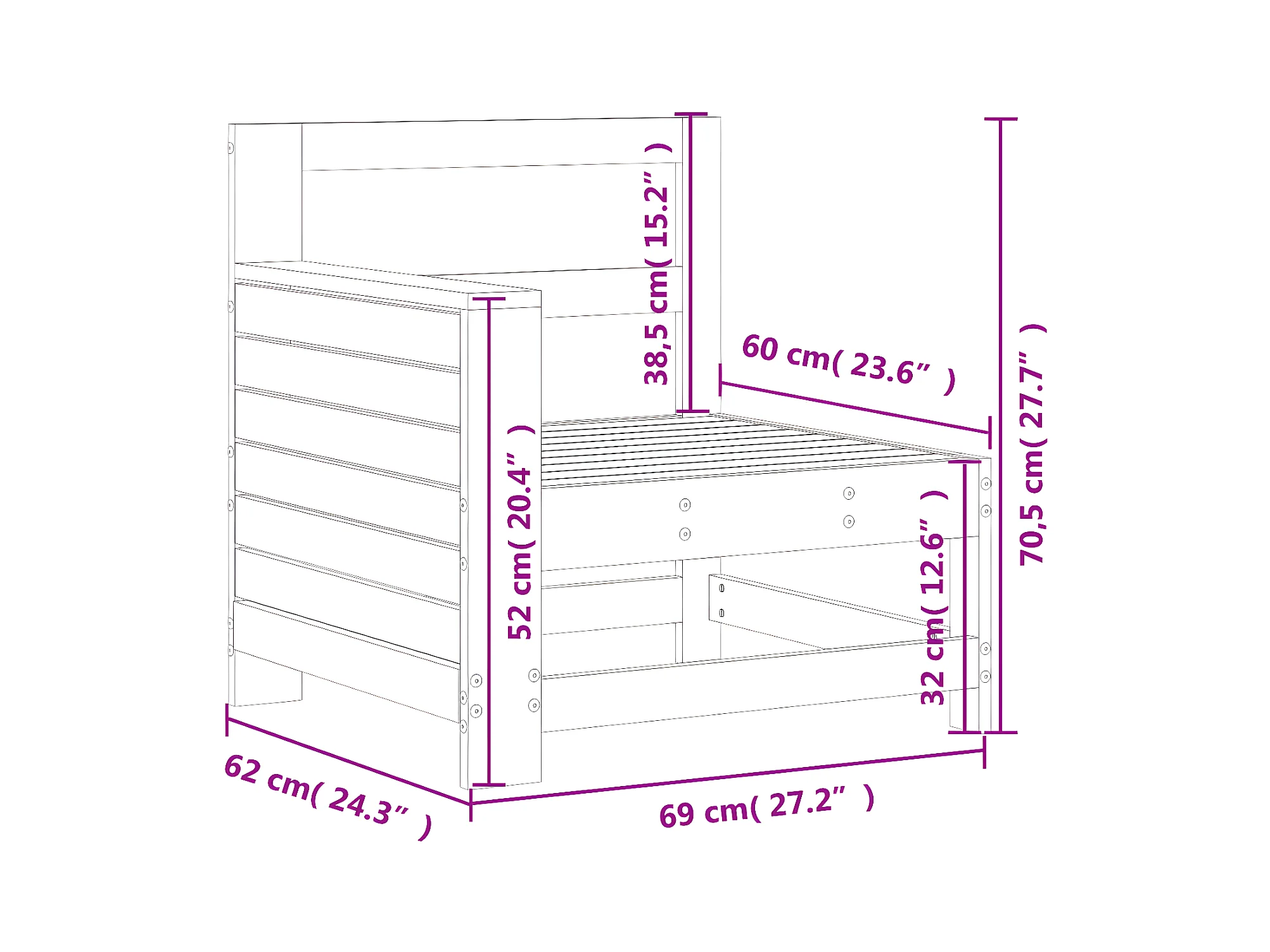 Divano da giardino bianco con braccioli 69x62x70,5 cm in legno di pino massiccio