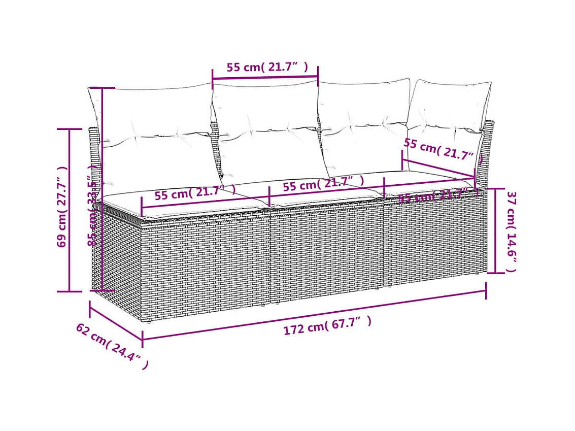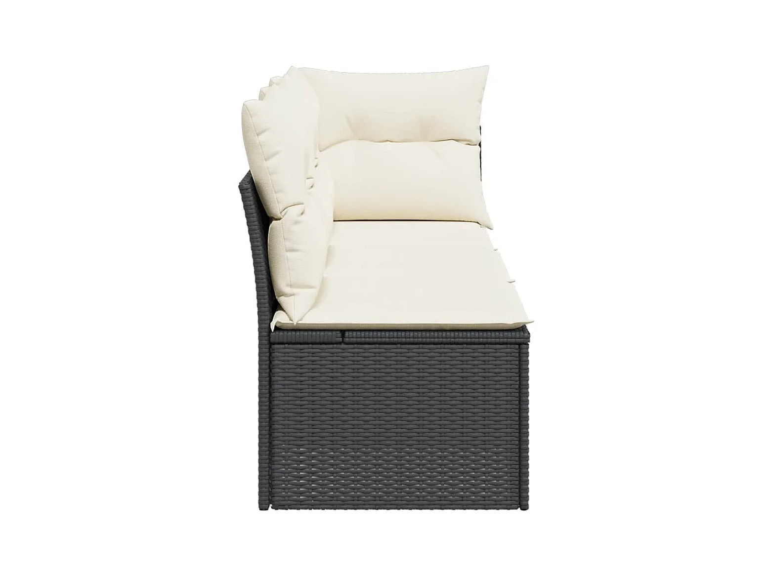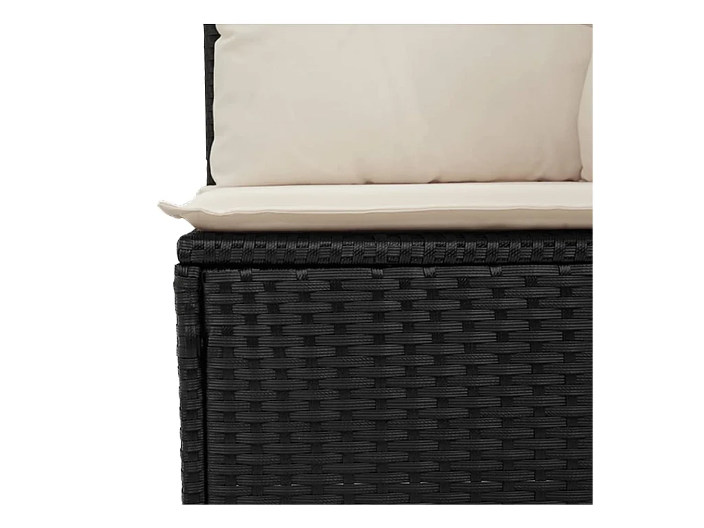 Divano da giardino con cuscini a 3 posti, resina intrecciata nera