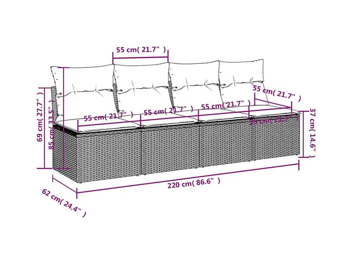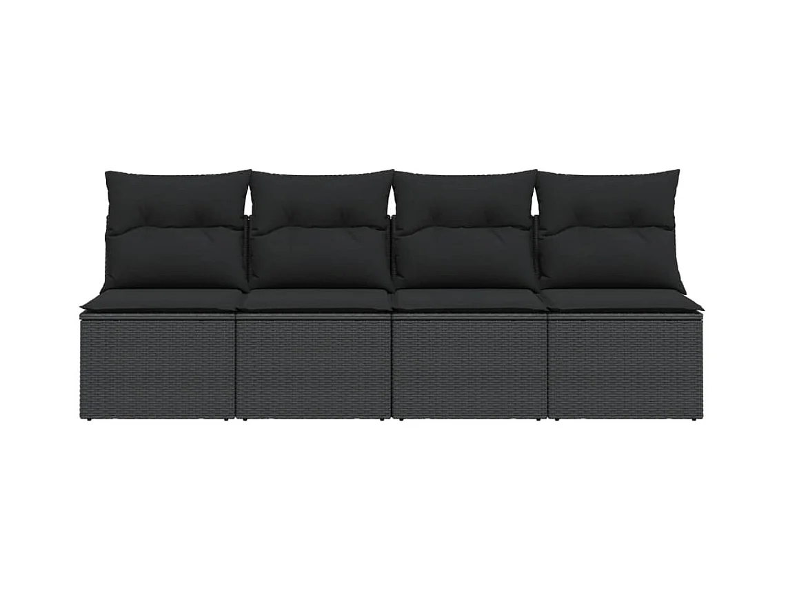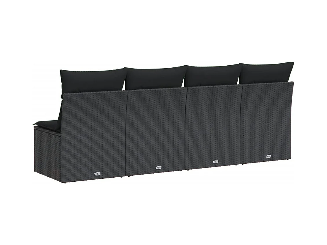 Divano da giardino con cuscini a 4 posti, resina intrecciata nera