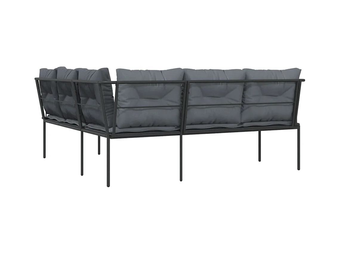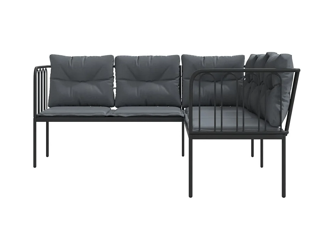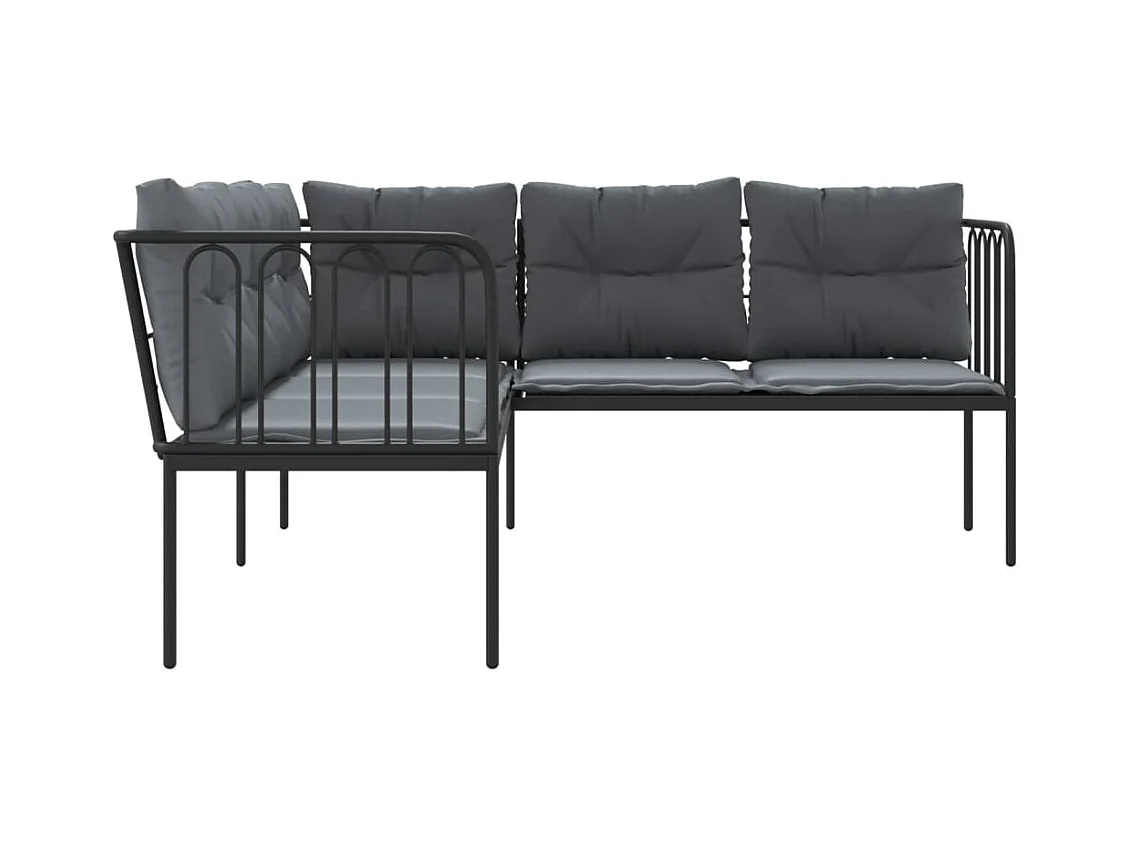 Divano da giardino con cuscini a L, acciaio Textilene nero