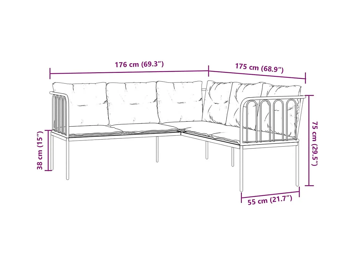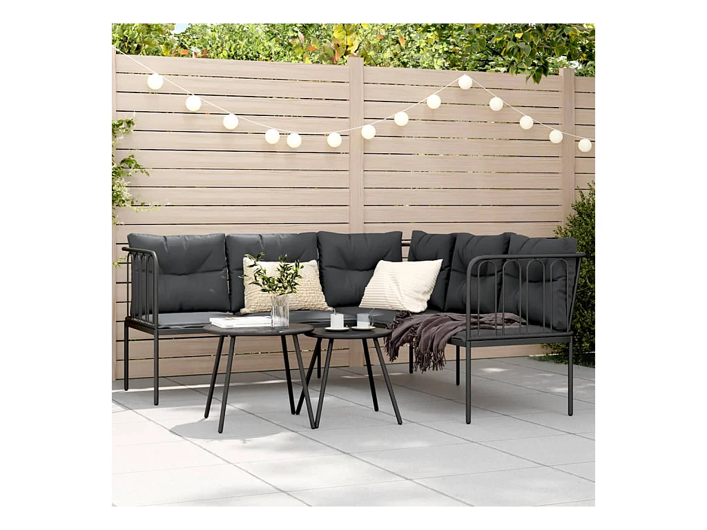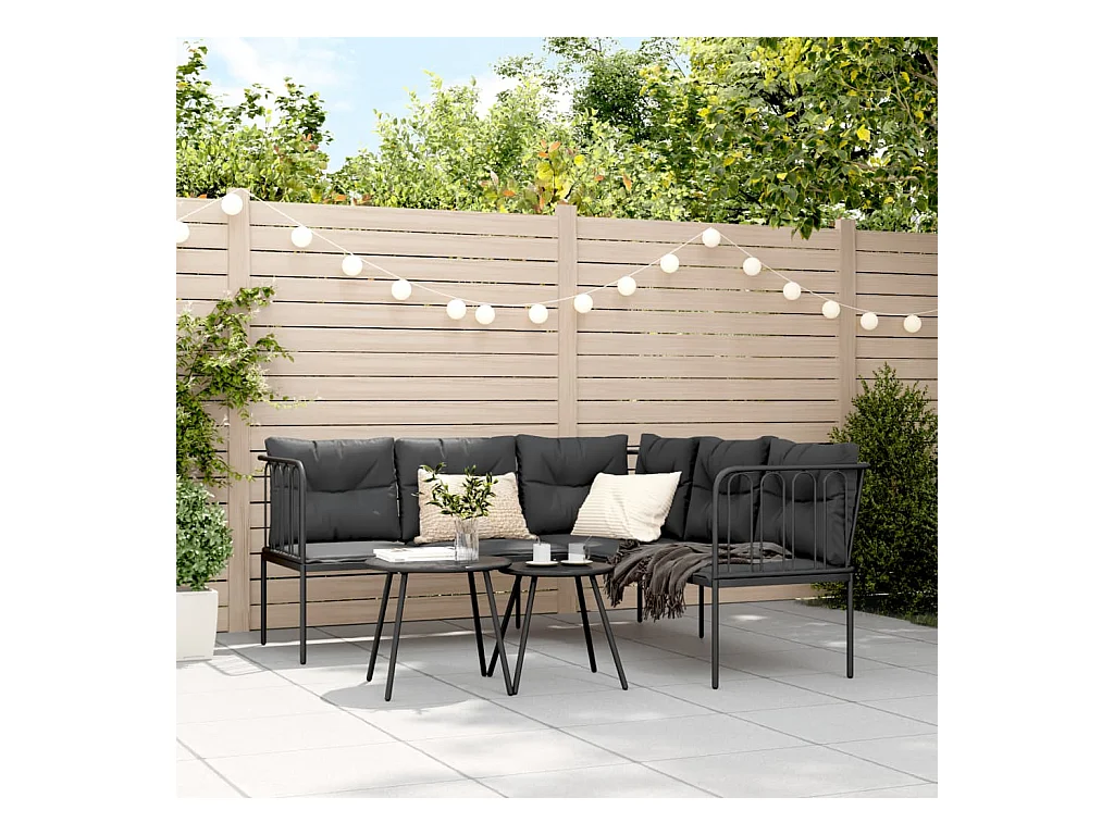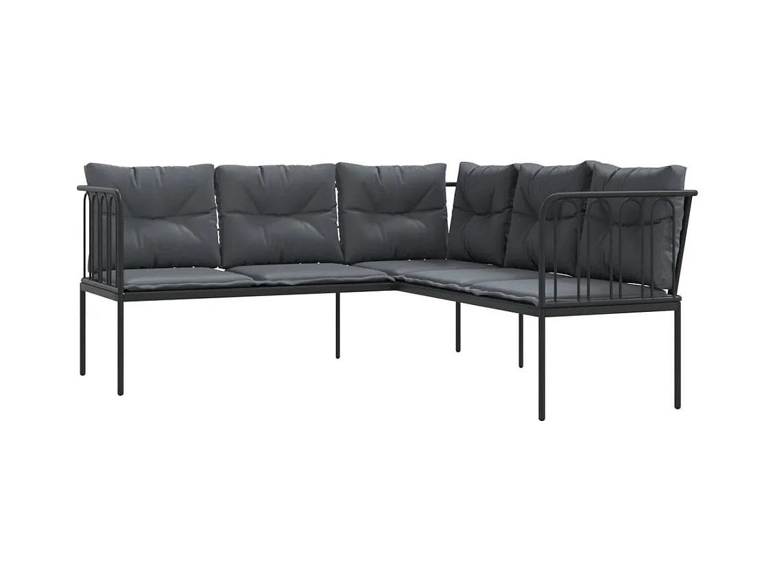 Divano da giardino con cuscini a L, acciaio Textilene nero
