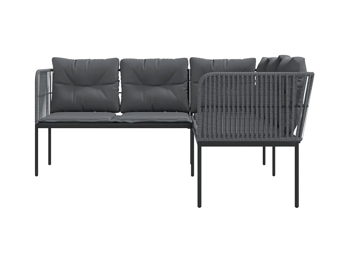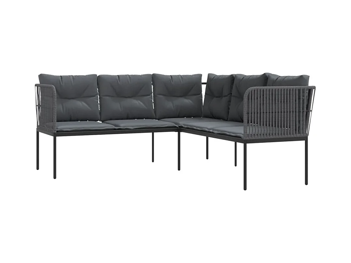 Divano da giardino con cuscini a L, acciaio Textilene nero
