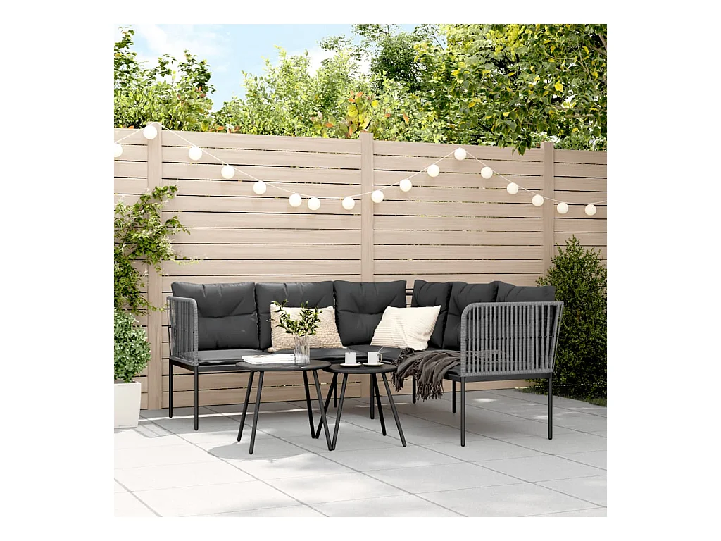Divano da giardino con tavolo rotondo con cuscini in resina intrecciata nera