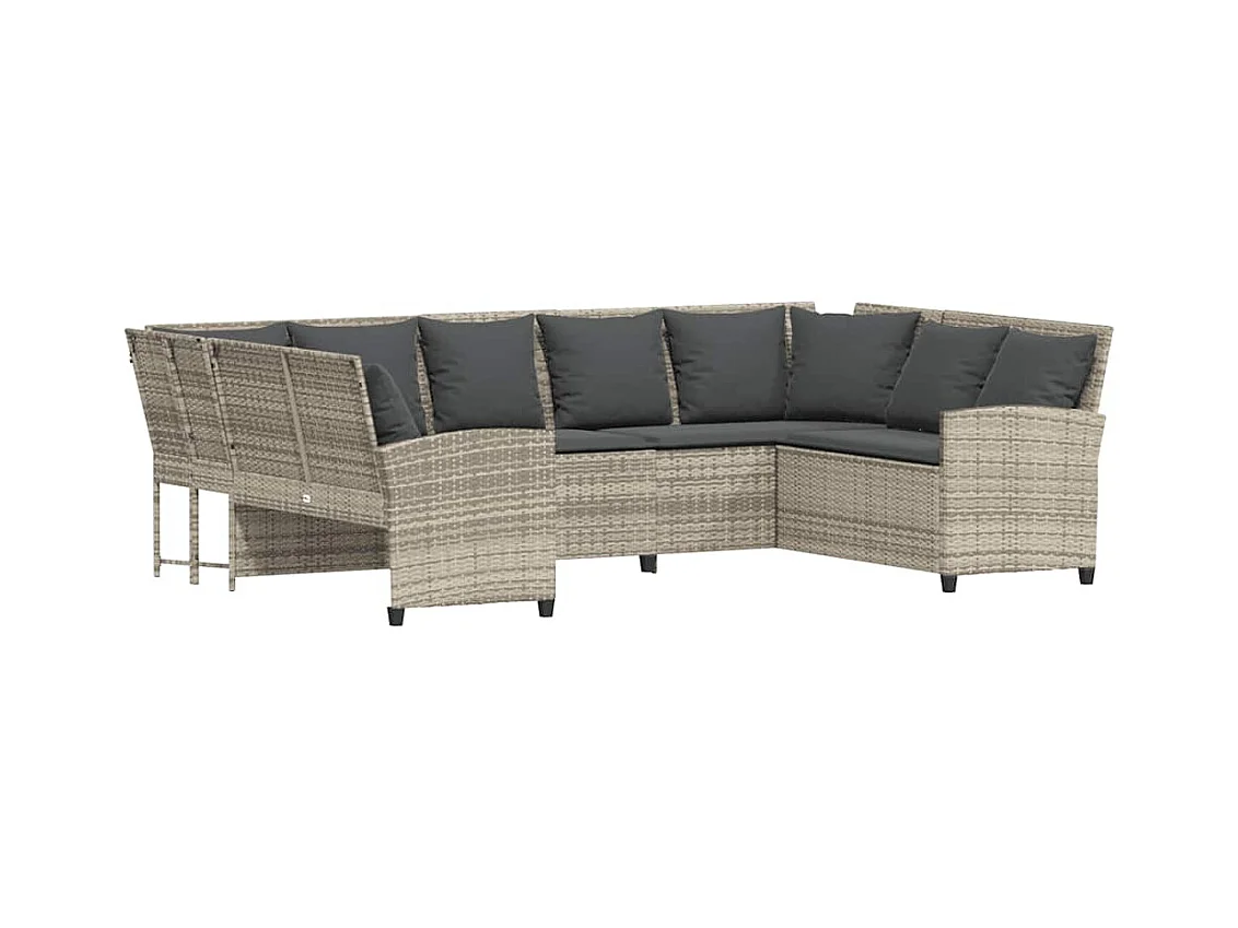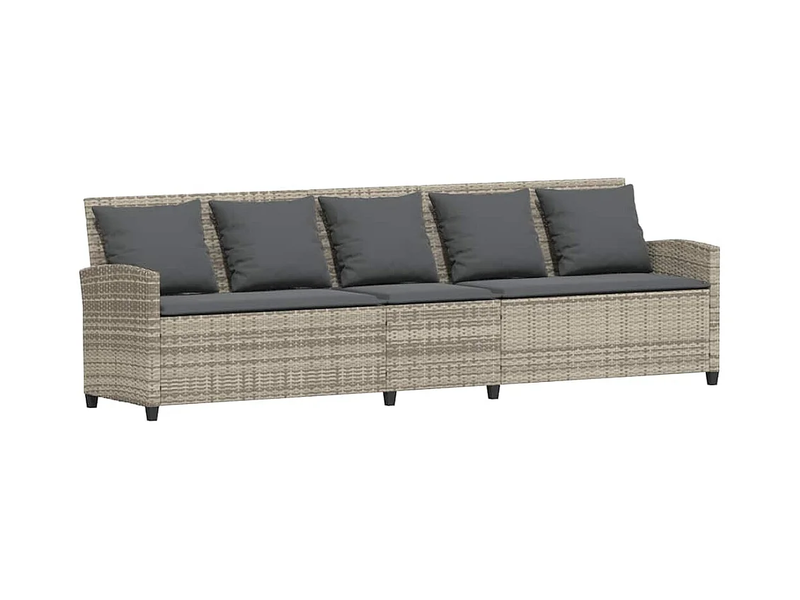 Divano da Giardino con Cuscini in Polyrattan Grigio Chiaro