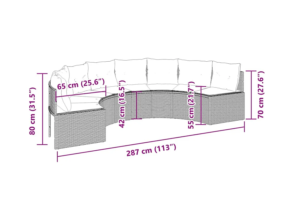 Divano da Giardino con Cuscini Semicircolare in Polyrattan