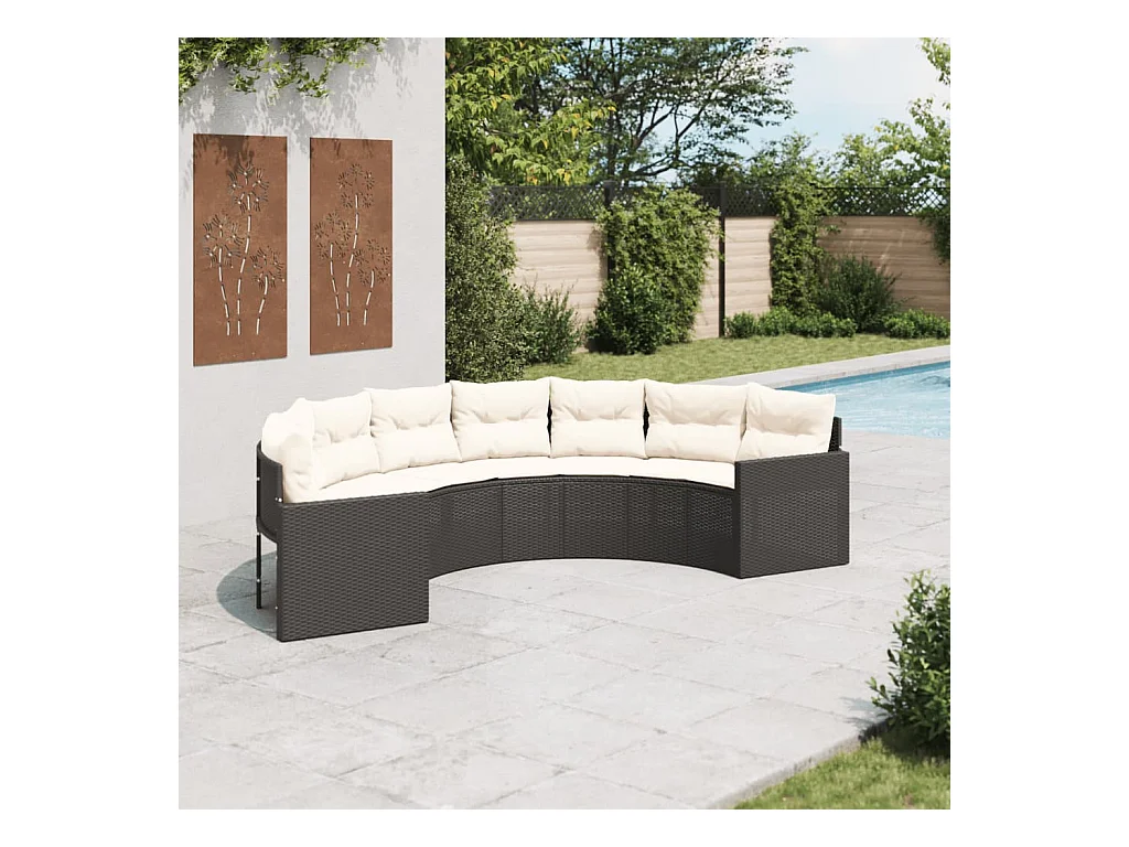 Divano da Giardino con Cuscini Circolare Nero in Polyrattan