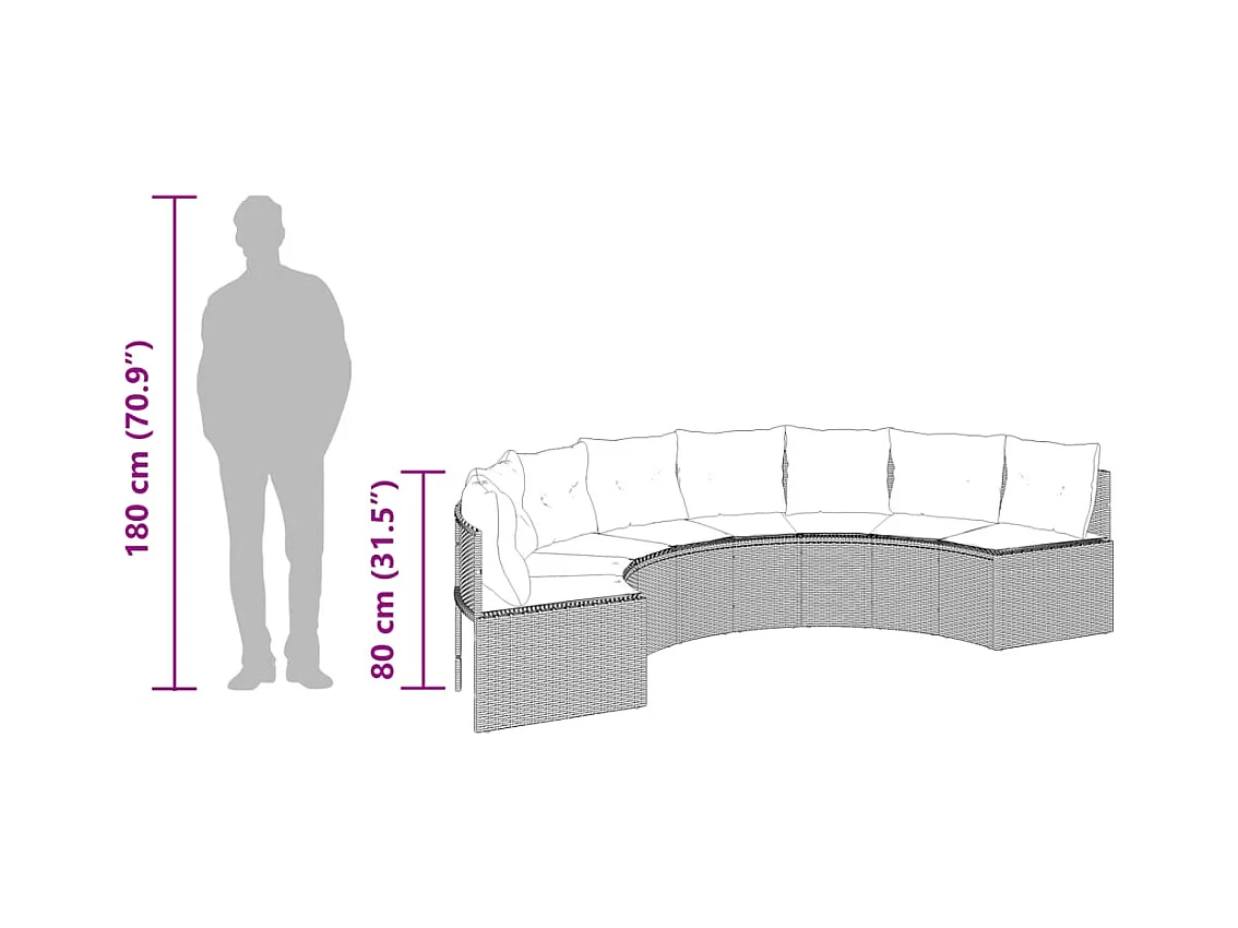 Cuscini tavolo per divano da giardino semicircolari in resina intrecciata nera