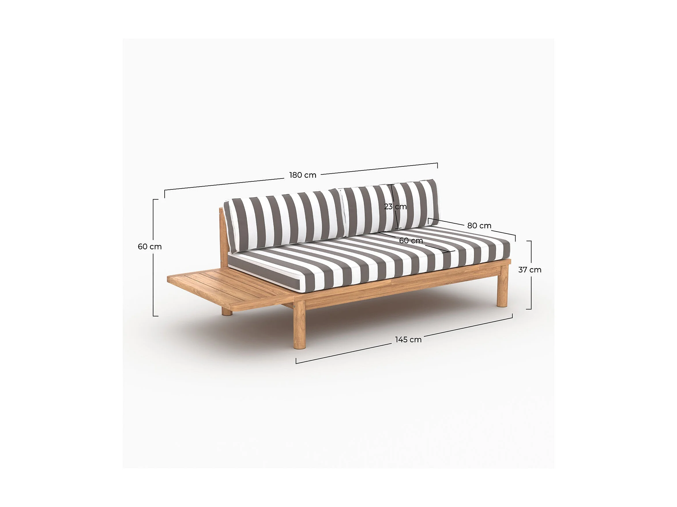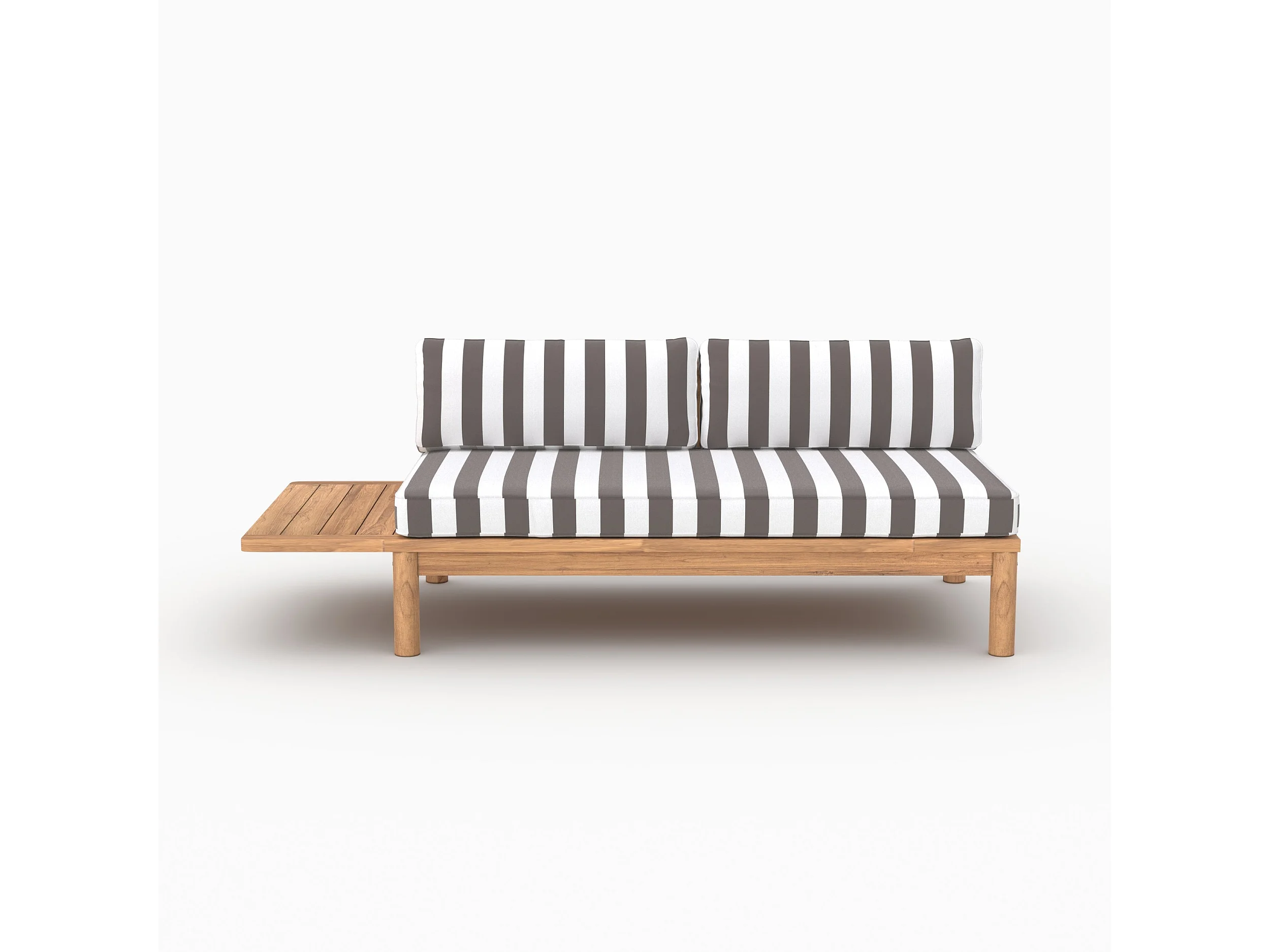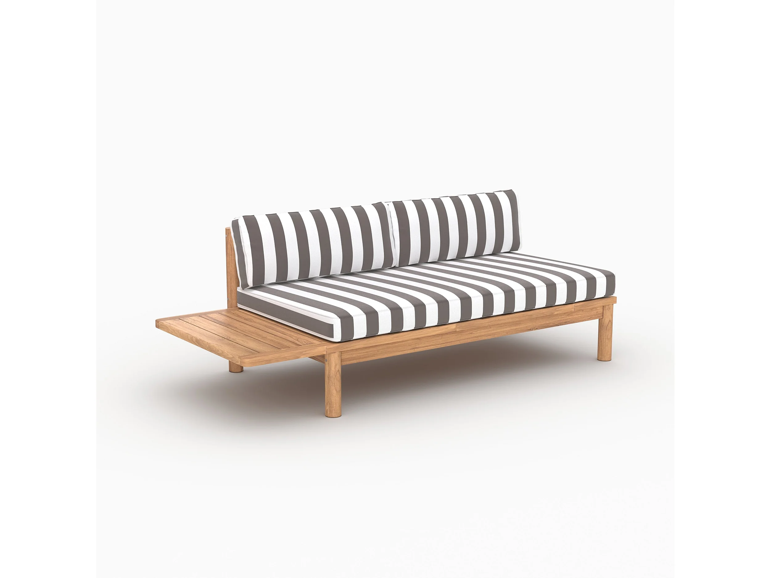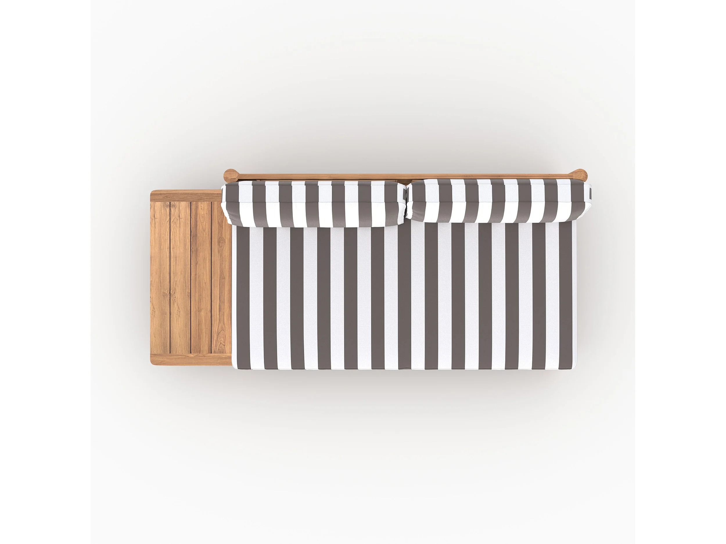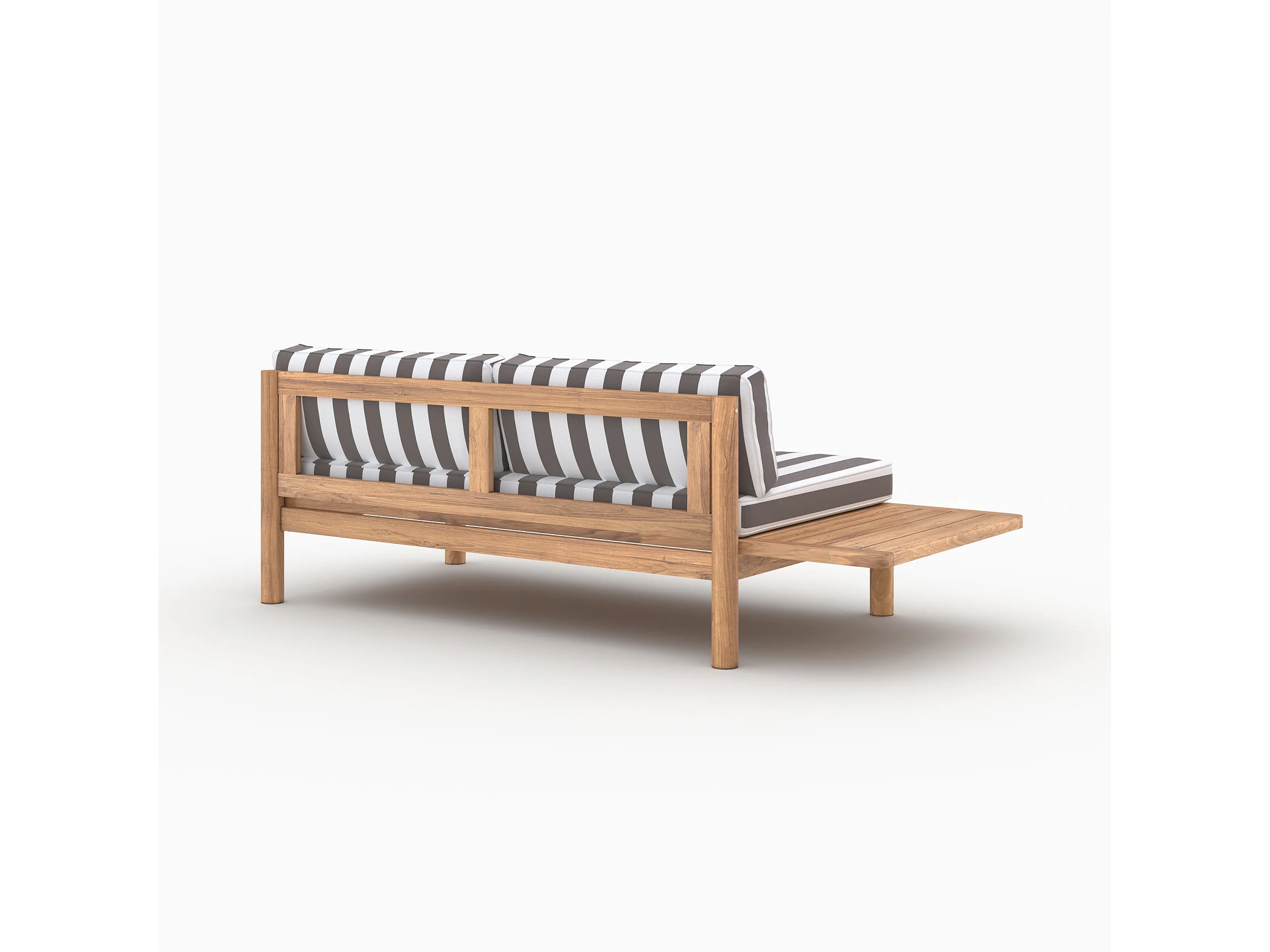 Divano da giardino in teak massello con cuscini a righe grigi 2 posti - Nadila