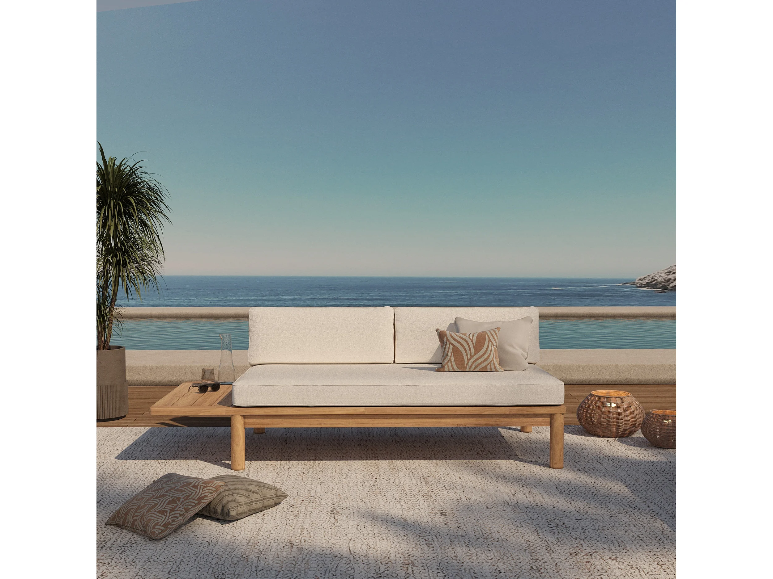 Divano da giardino in teak massiccio e cuscino bianco 2 posti - Nadila