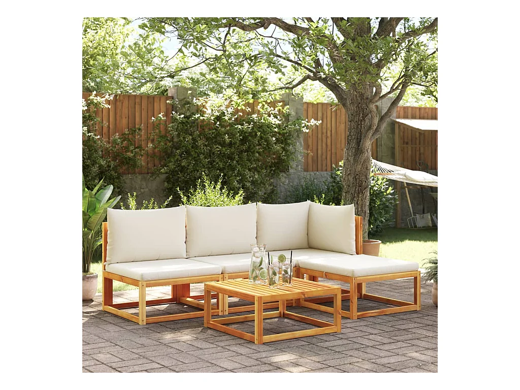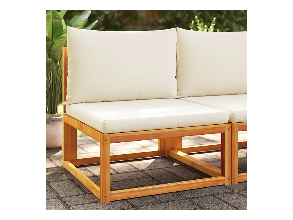 Divano da giardino senza braccioli con cuscini in legno massello di acacia