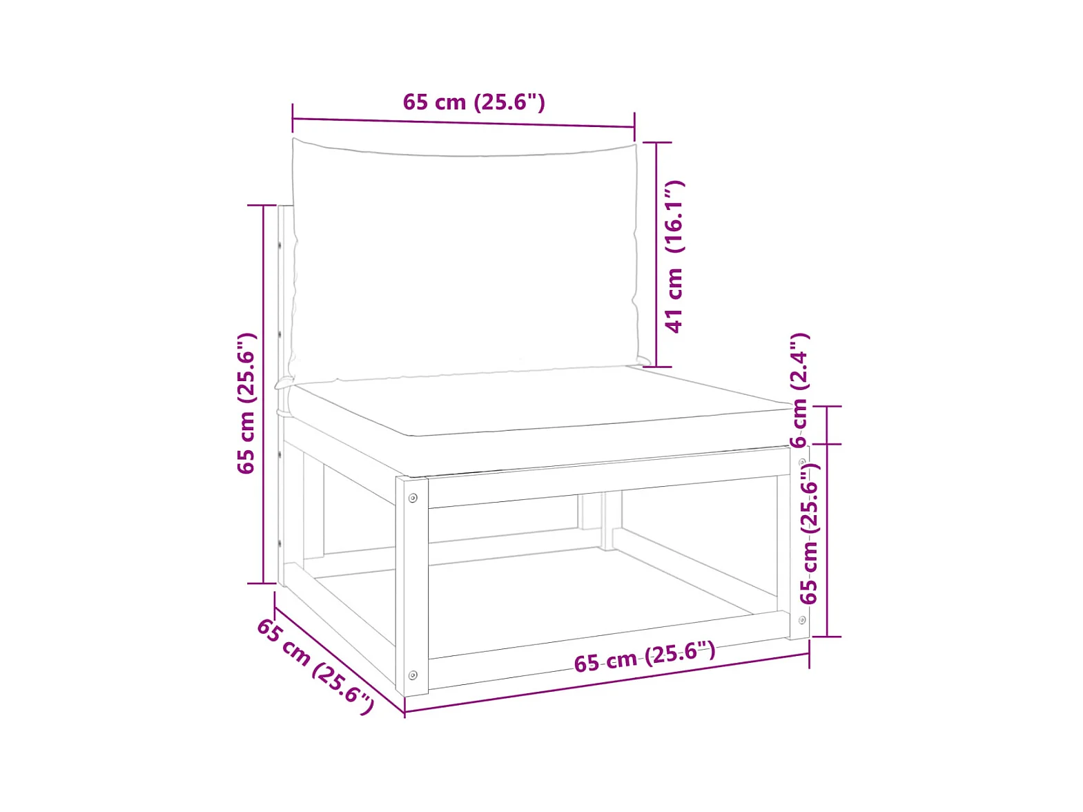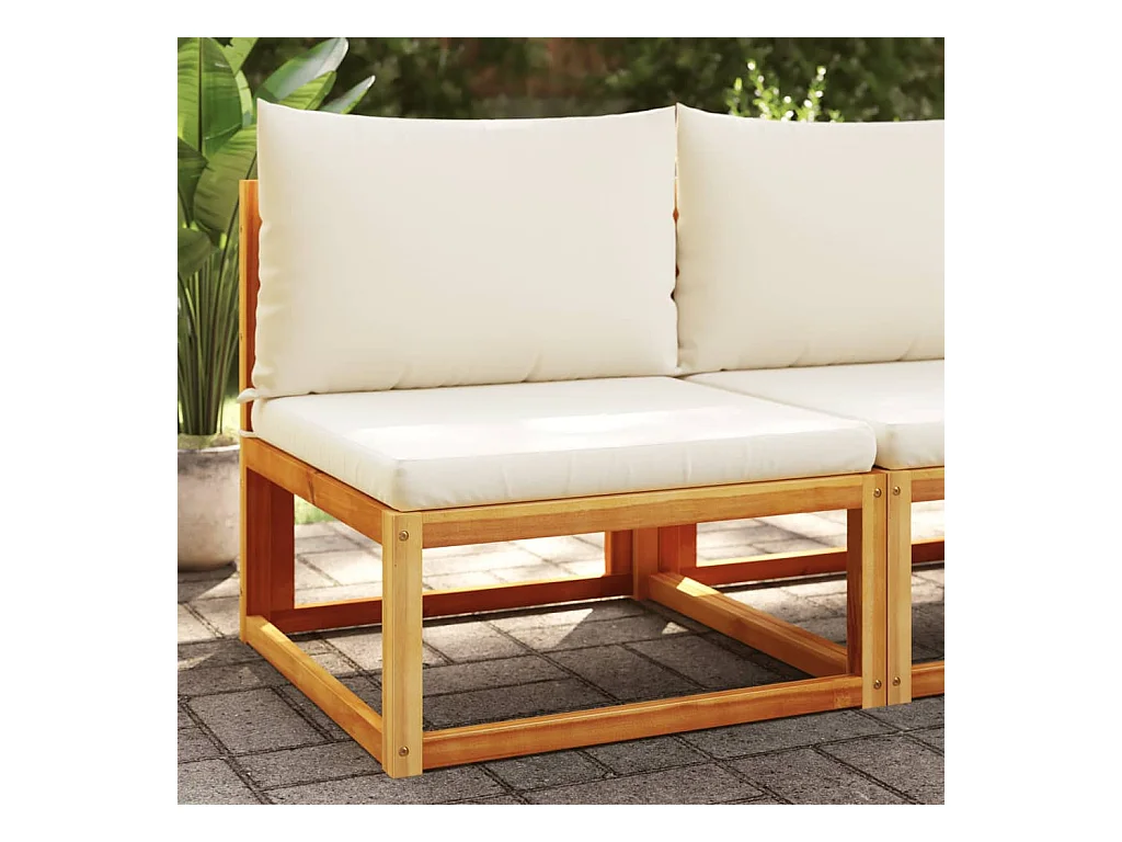 Divano da giardino senza braccioli con cuscini in legno massello di acacia