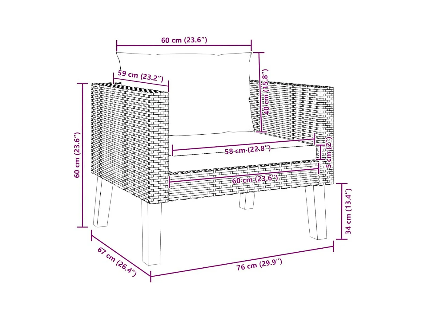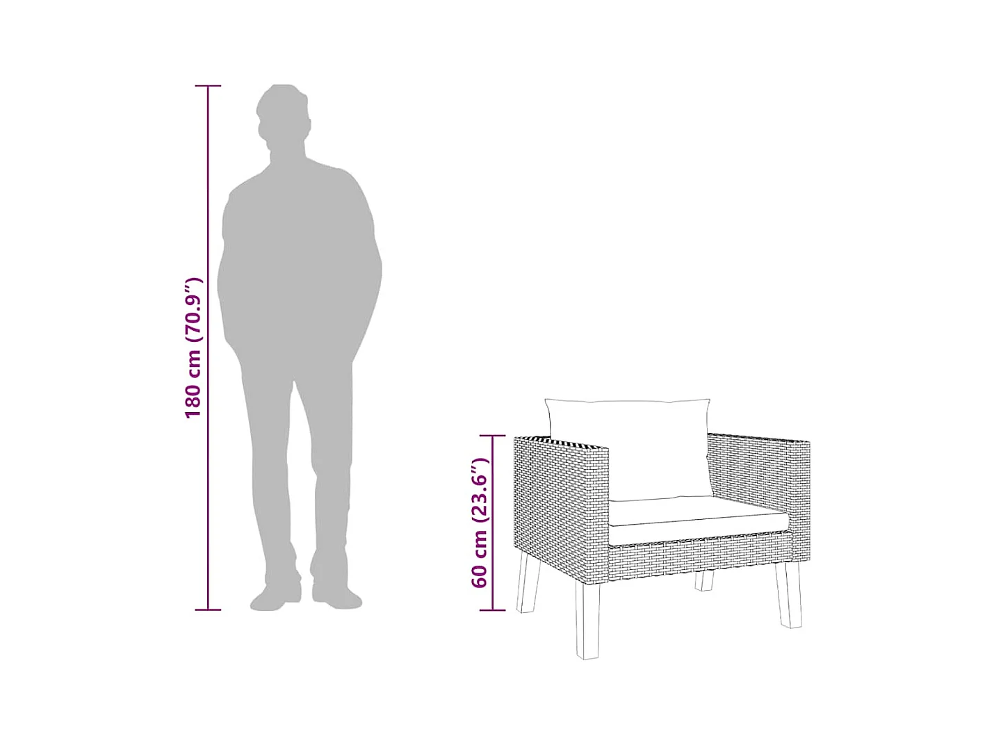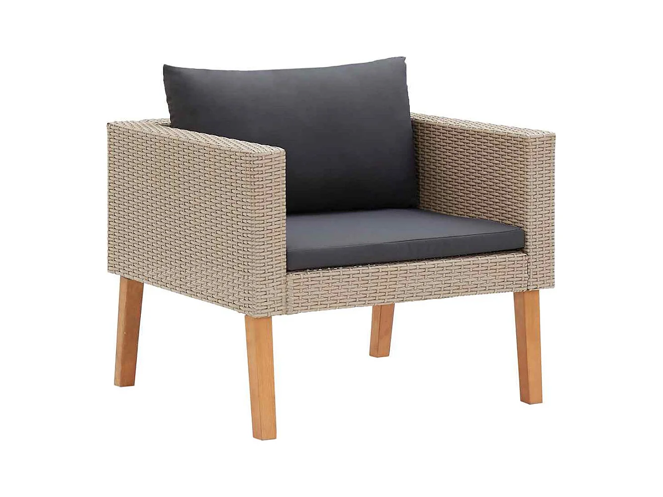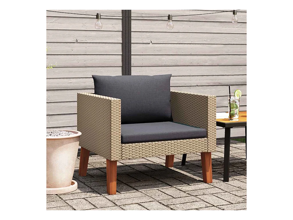 Divano da Giardino Singolo con Cuscini in Polyrattan Beige
