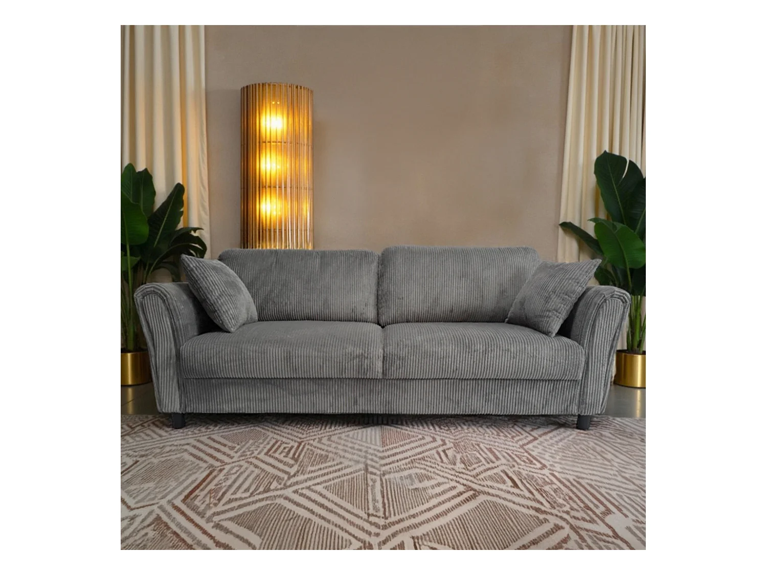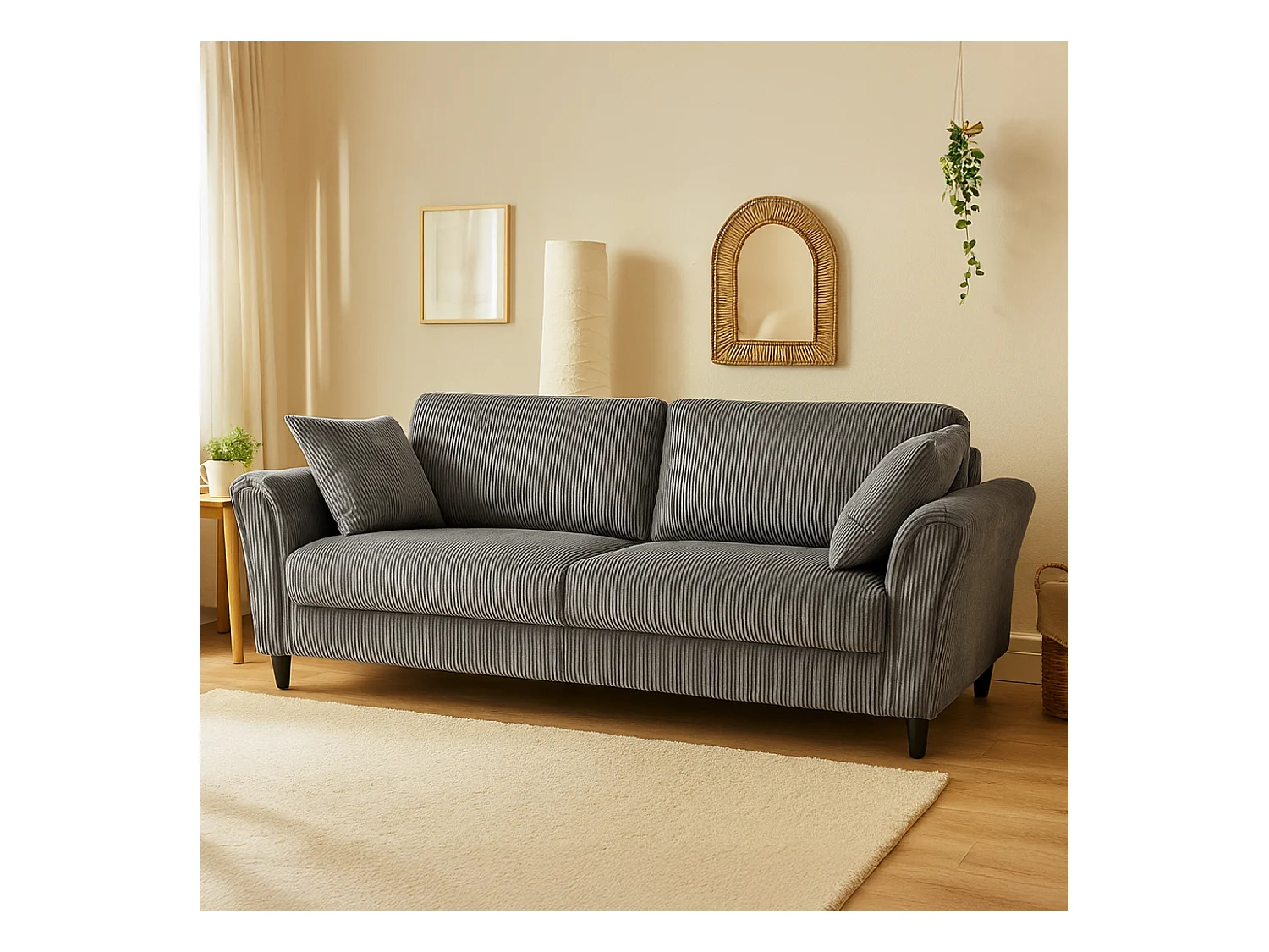Divano dritto 4 posti in velluto a coste grigio scuro LUCERNE - Confortevole, elegante e contemporaneo