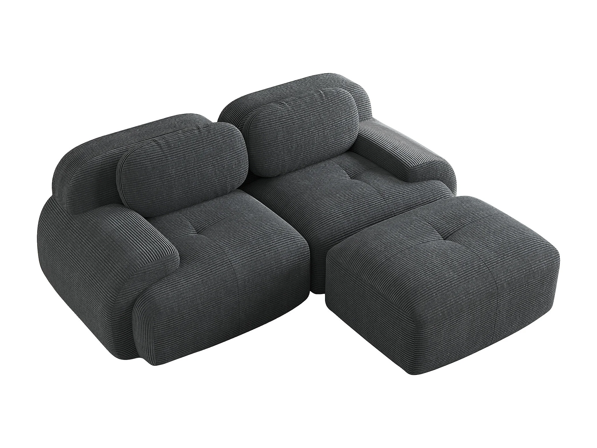 Divano dritto a 2 posti con poggiapiedi e cuscini - Velluto a coste grigio