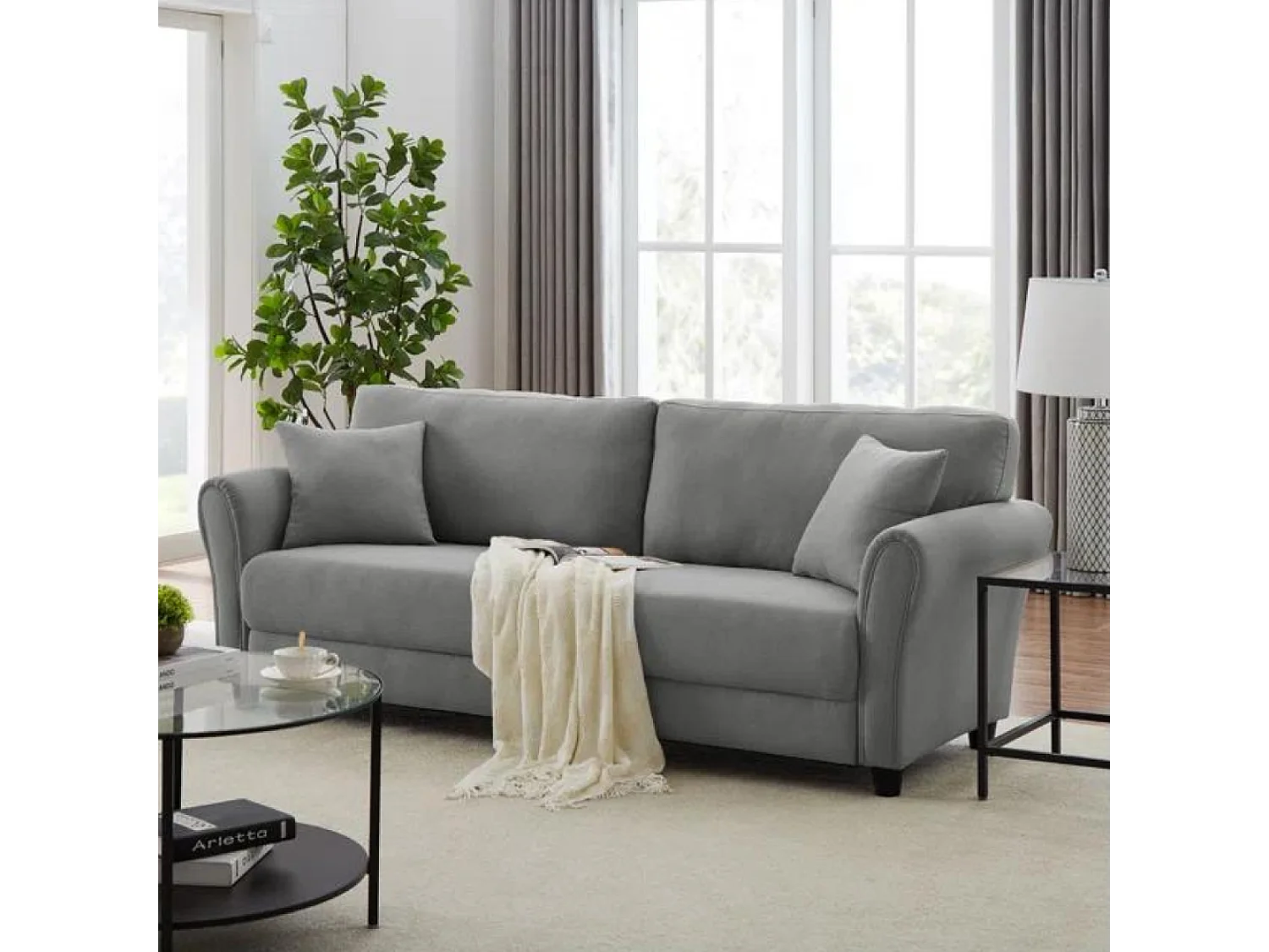 Divano dritto a 4 posti in tessuto grigio chiaro LUCERNE