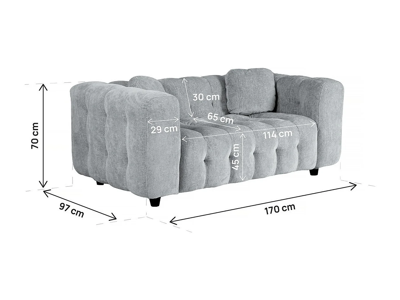 Divano dritto in tessuto ciniglia "Vendome" - 2 posti - Grigio