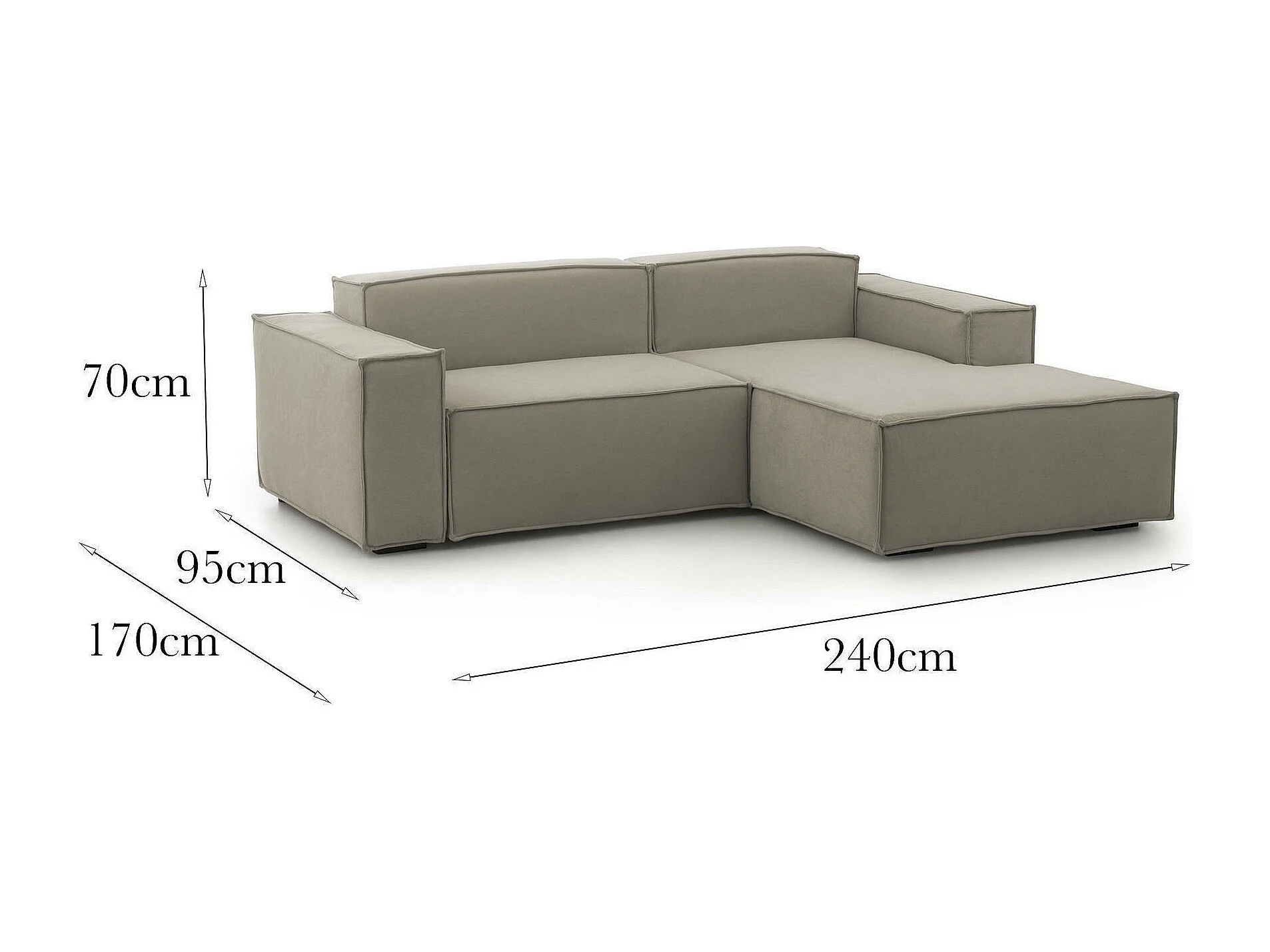 Divano Fisso con Penisola Ameli, Sfoderabile Made in Italy, 170x240 cm Grigio Tortora