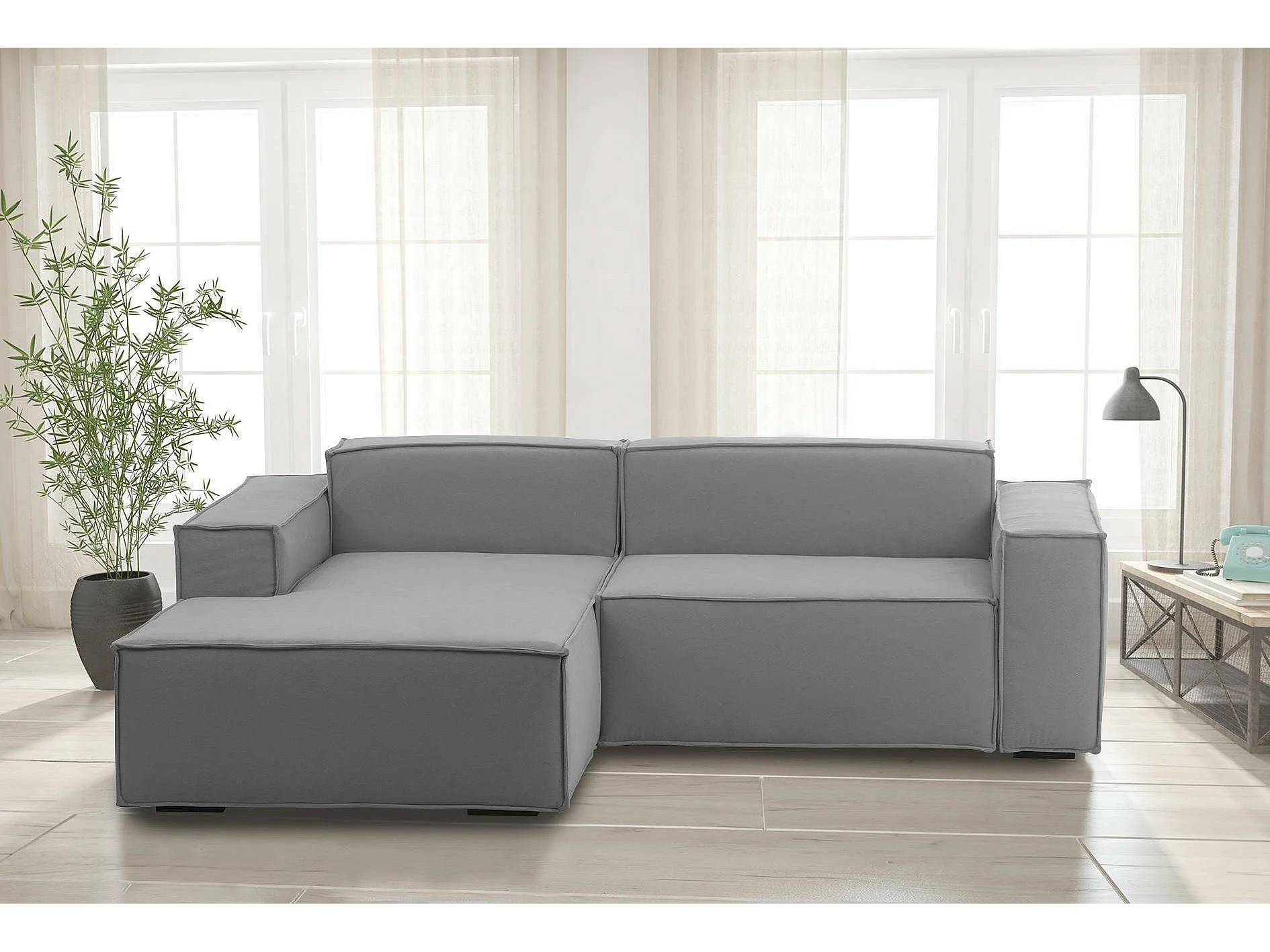 Divano fisso Daniela, Divano componibile a 2 posti large con penisola sinistra, 100% Made in Italy, Sofà moderno in tessuto, Cm 240x170h70, Grigio