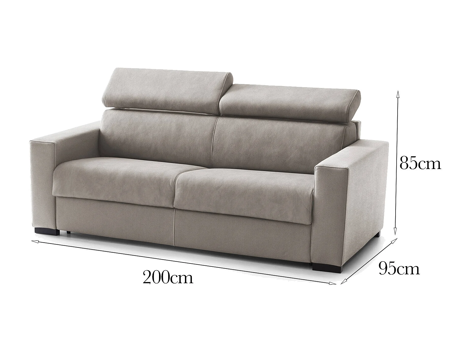 Divano Fisso 2 Posti Aggius, Sfoderabile Made in Italy, 95x200x85h cm Grigio Tortora