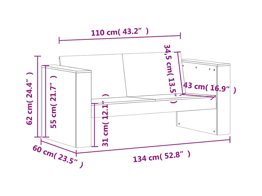 Divano da Giardino a 2 Posti in Massello di Pino Bianco