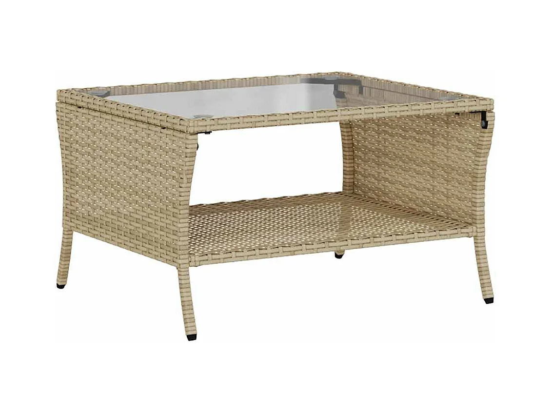 Tavolo da Giardino Piano in Vetro Grigio 100x55x73cm Polyrattan
