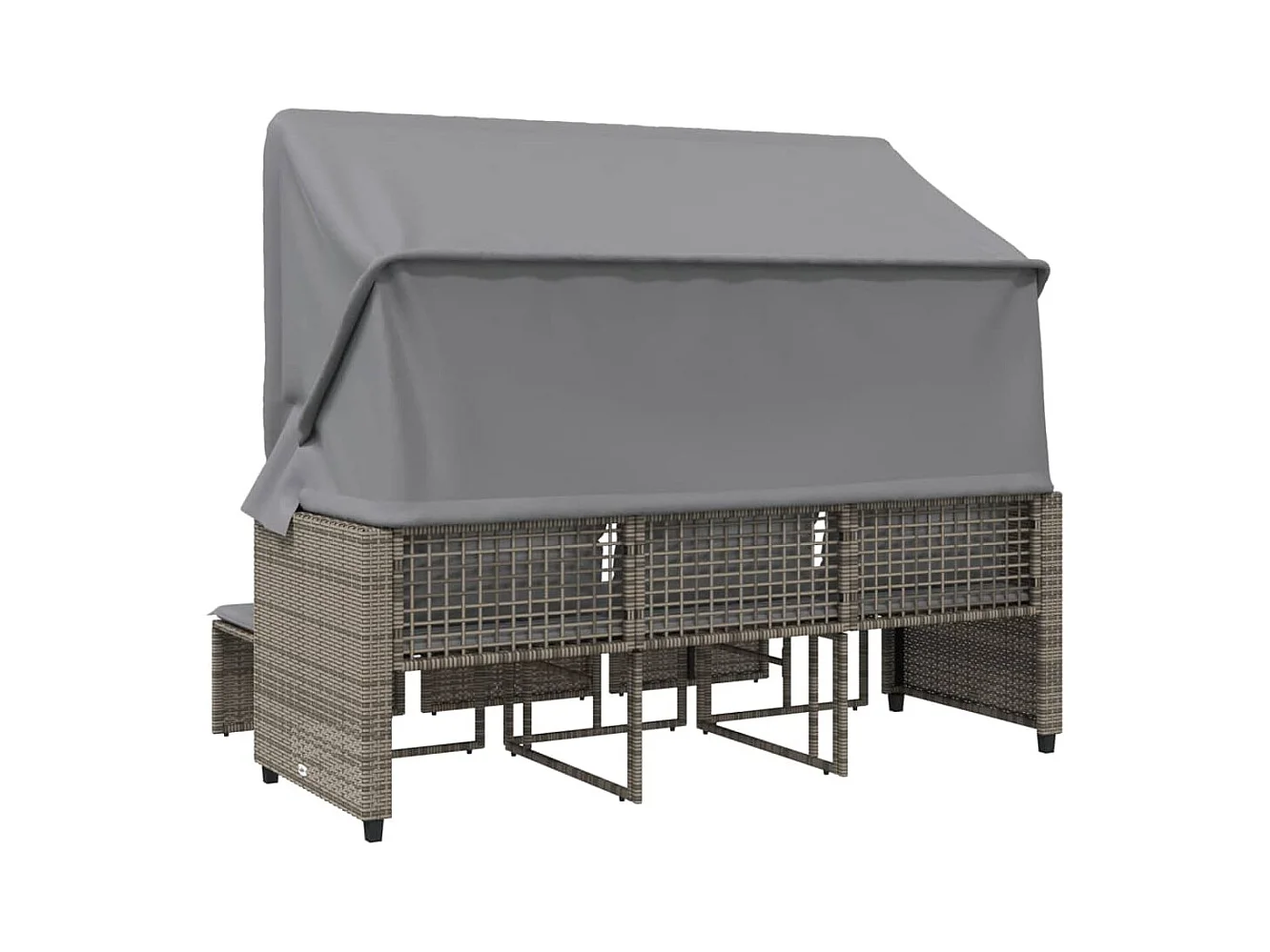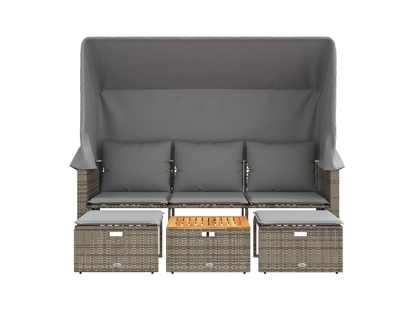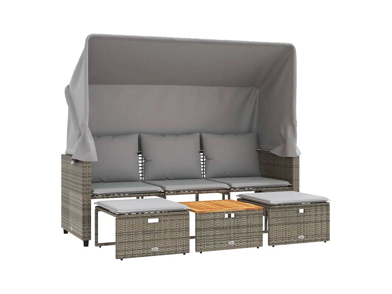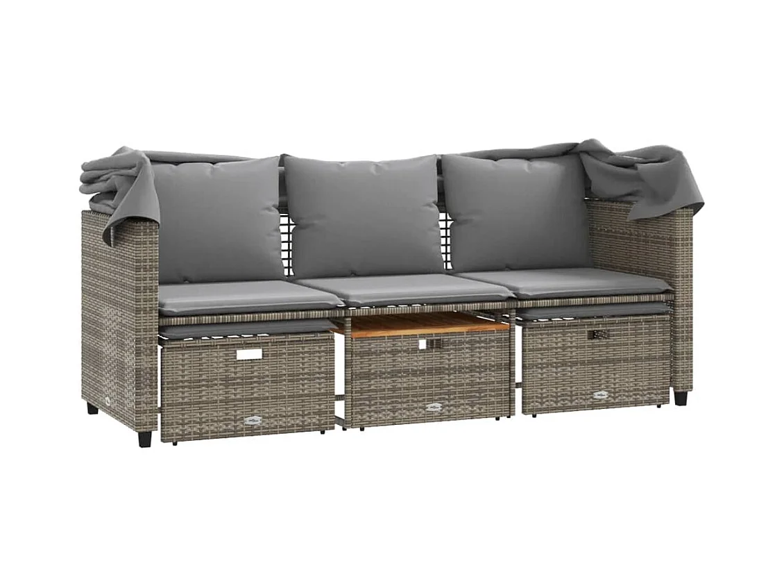 Divano Giardino 3 Posti con Tetto e Sgabelli Grigio Polyrattan