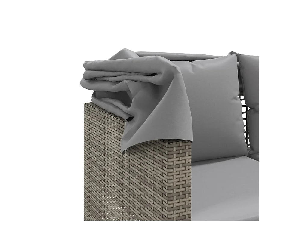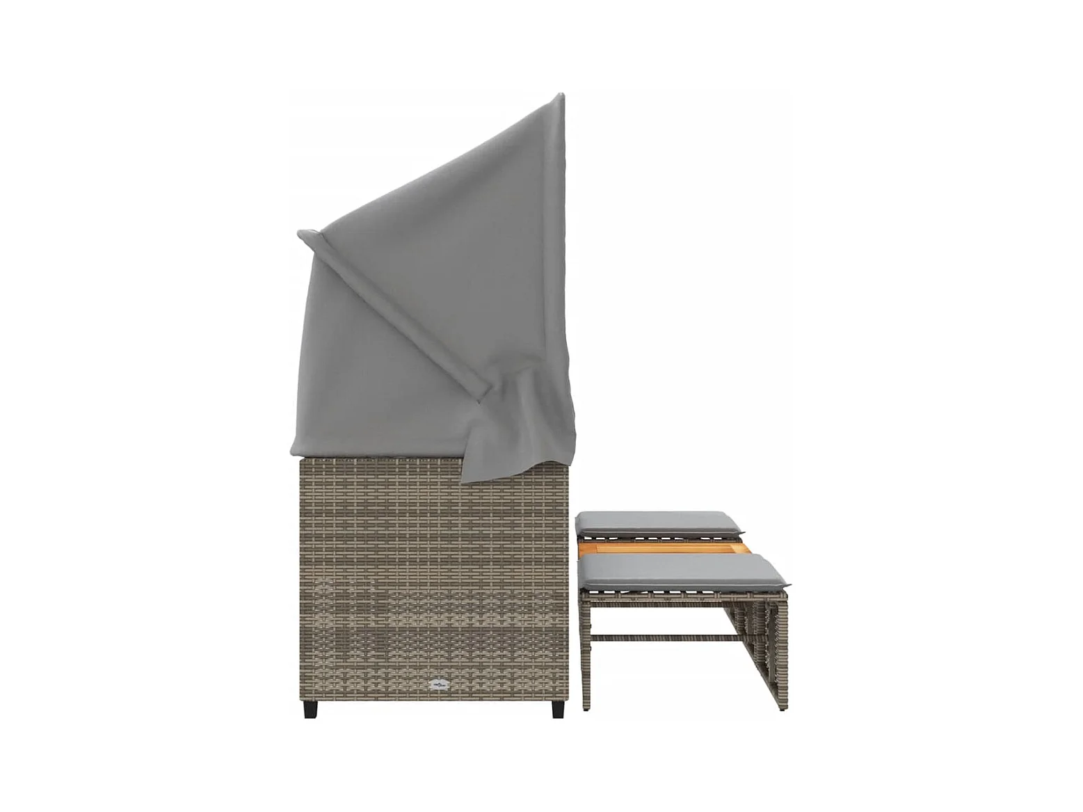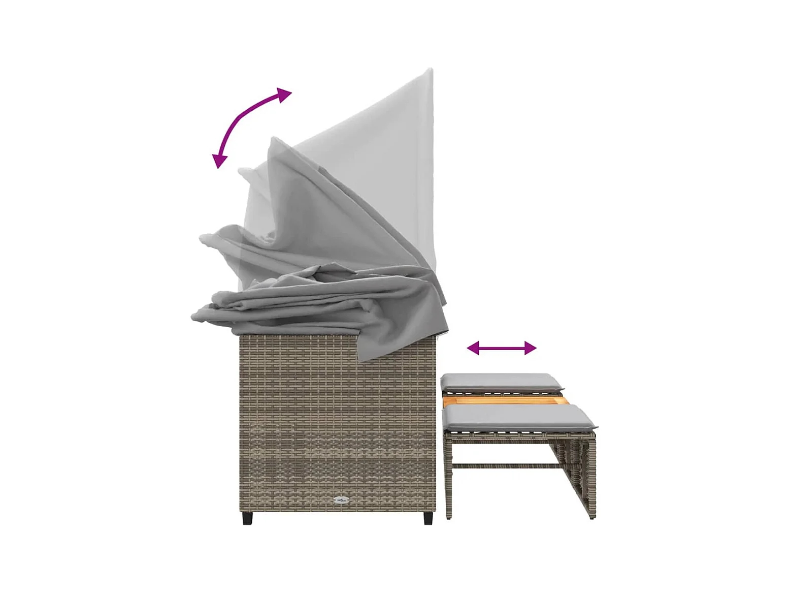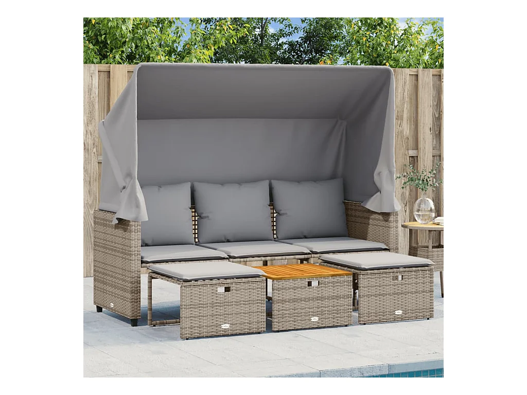 Divano Giardino 3 Posti con Tetto e Sgabelli Grigio Polyrattan