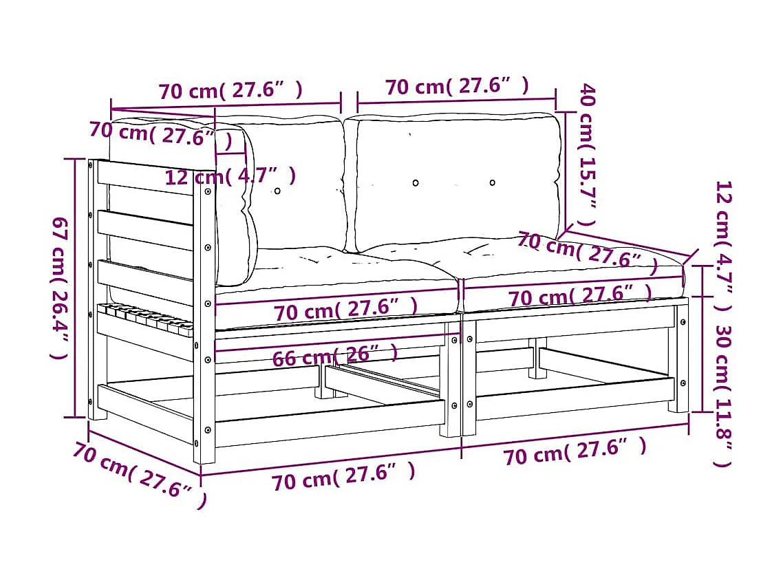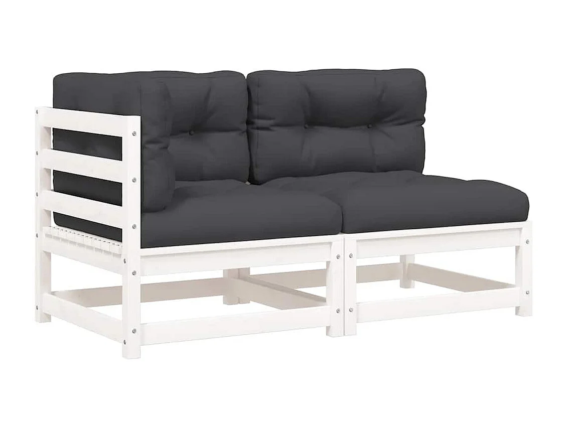 Divano Giardino con Cuscini 2 Posti Bianco Legno Massello Pino