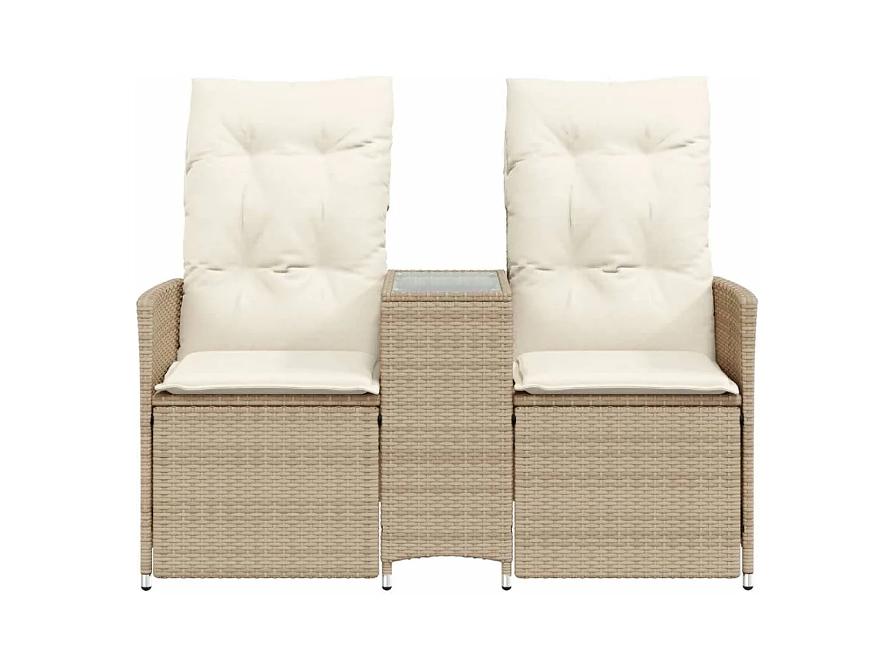 Divano Giardino Reclinabile 2 Posti Tavolino Beige Polyrattan