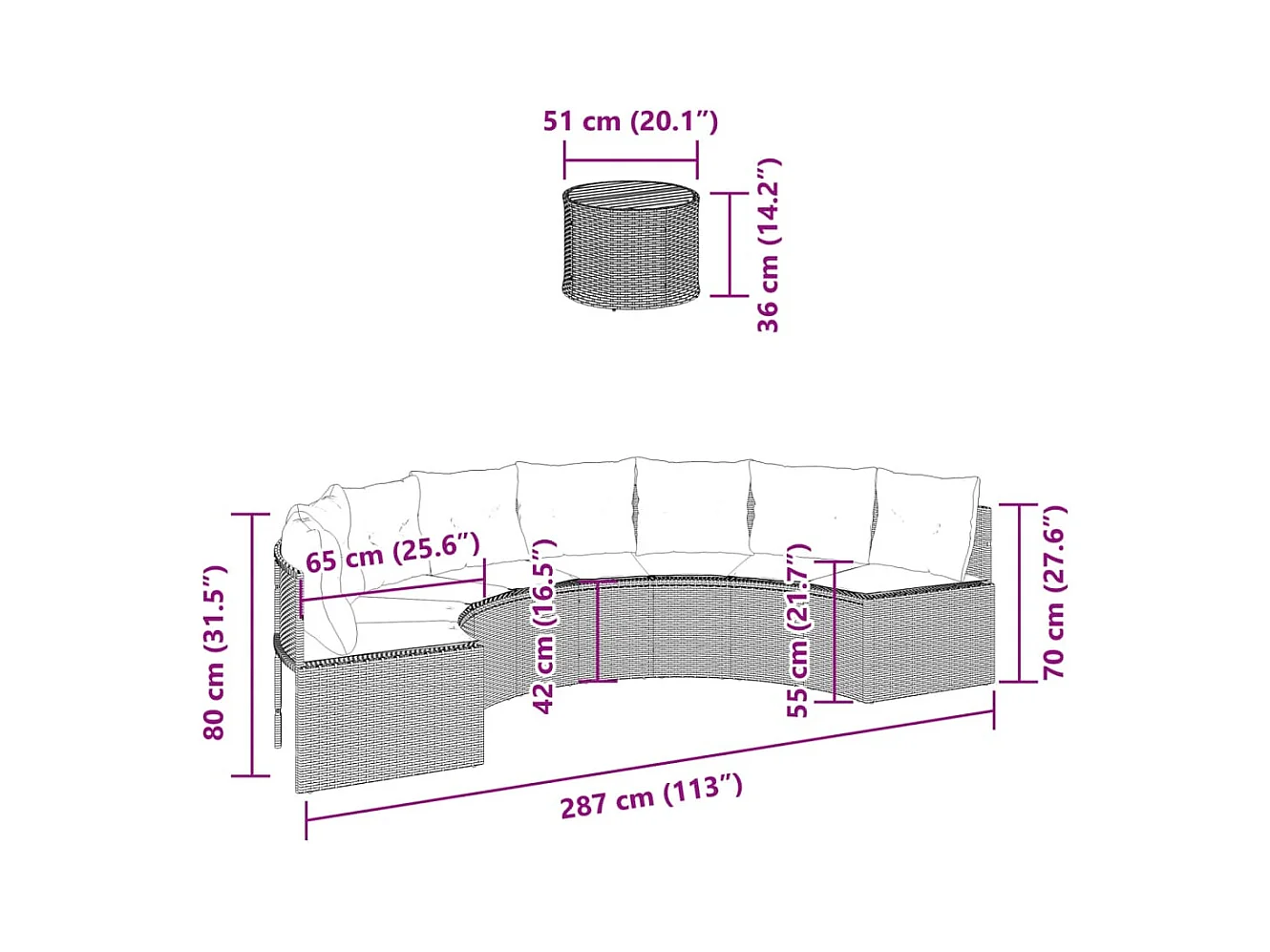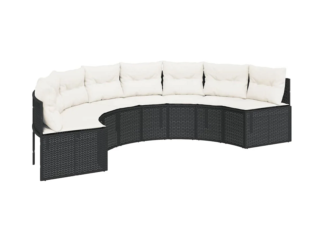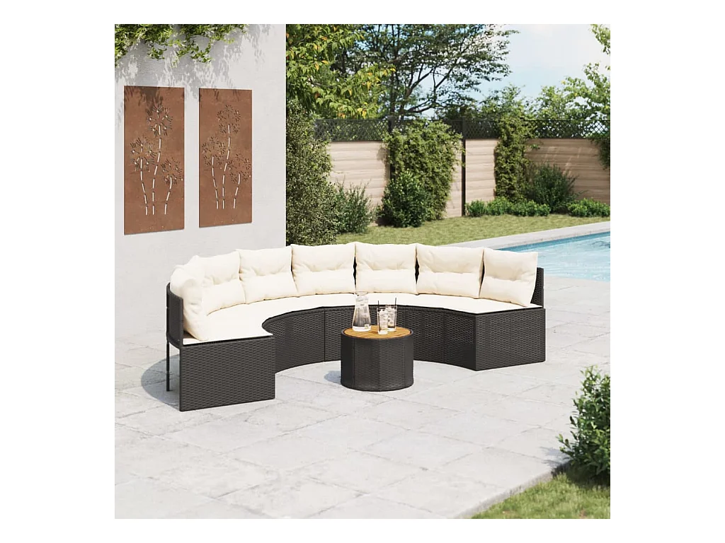 Divano Giardino Tavolo e Cuscini Semicircolare Nero Polyrattan