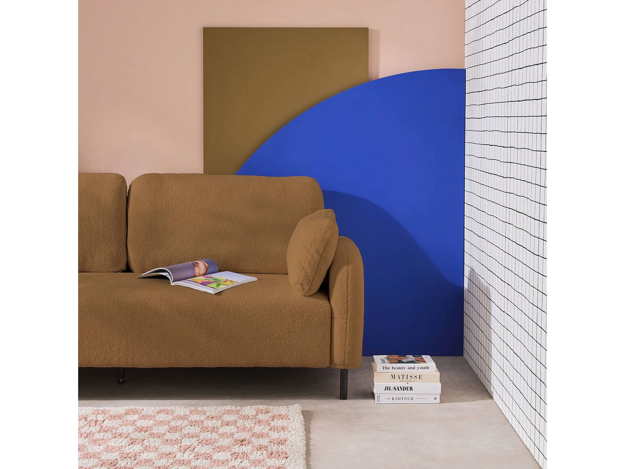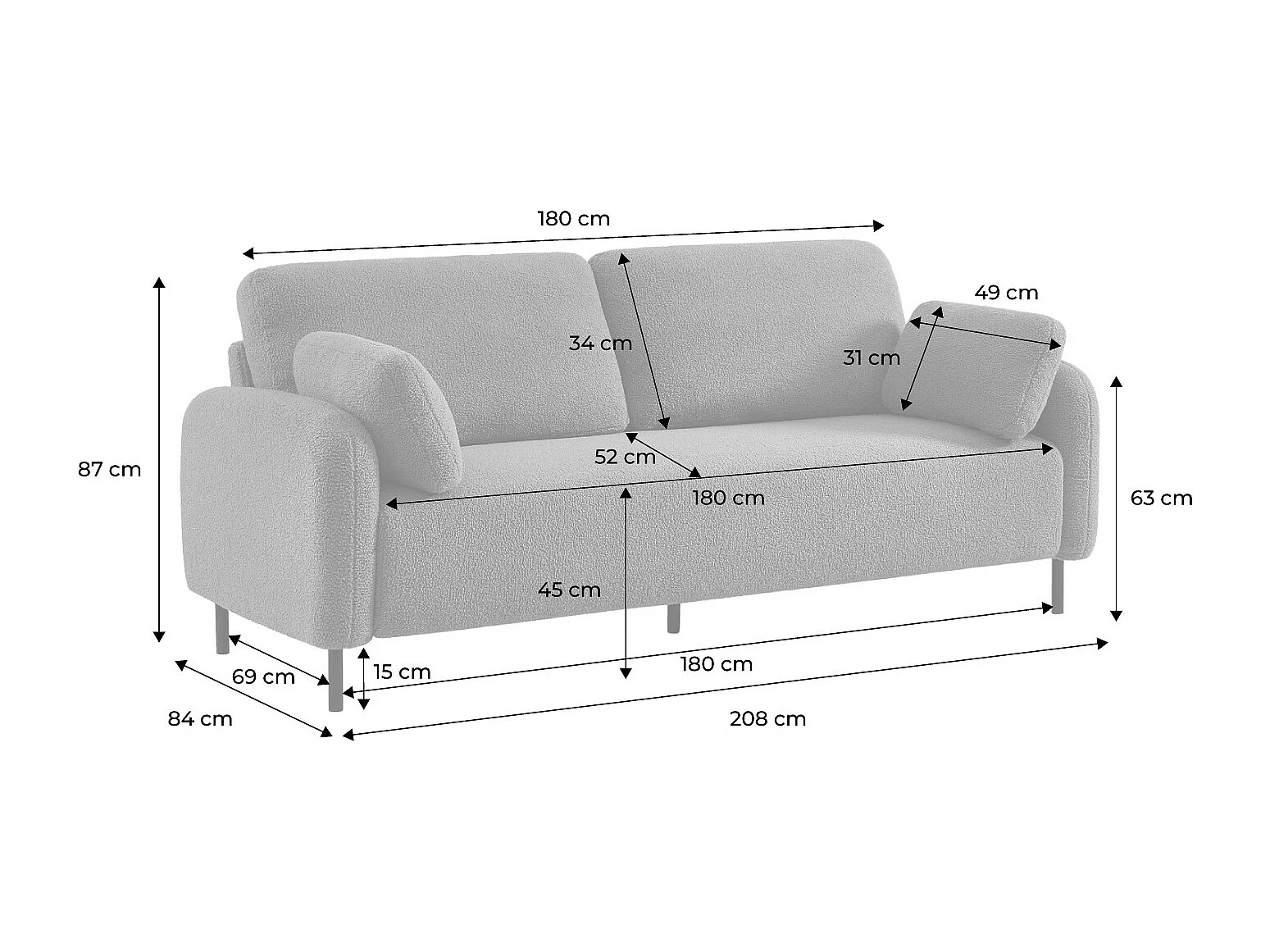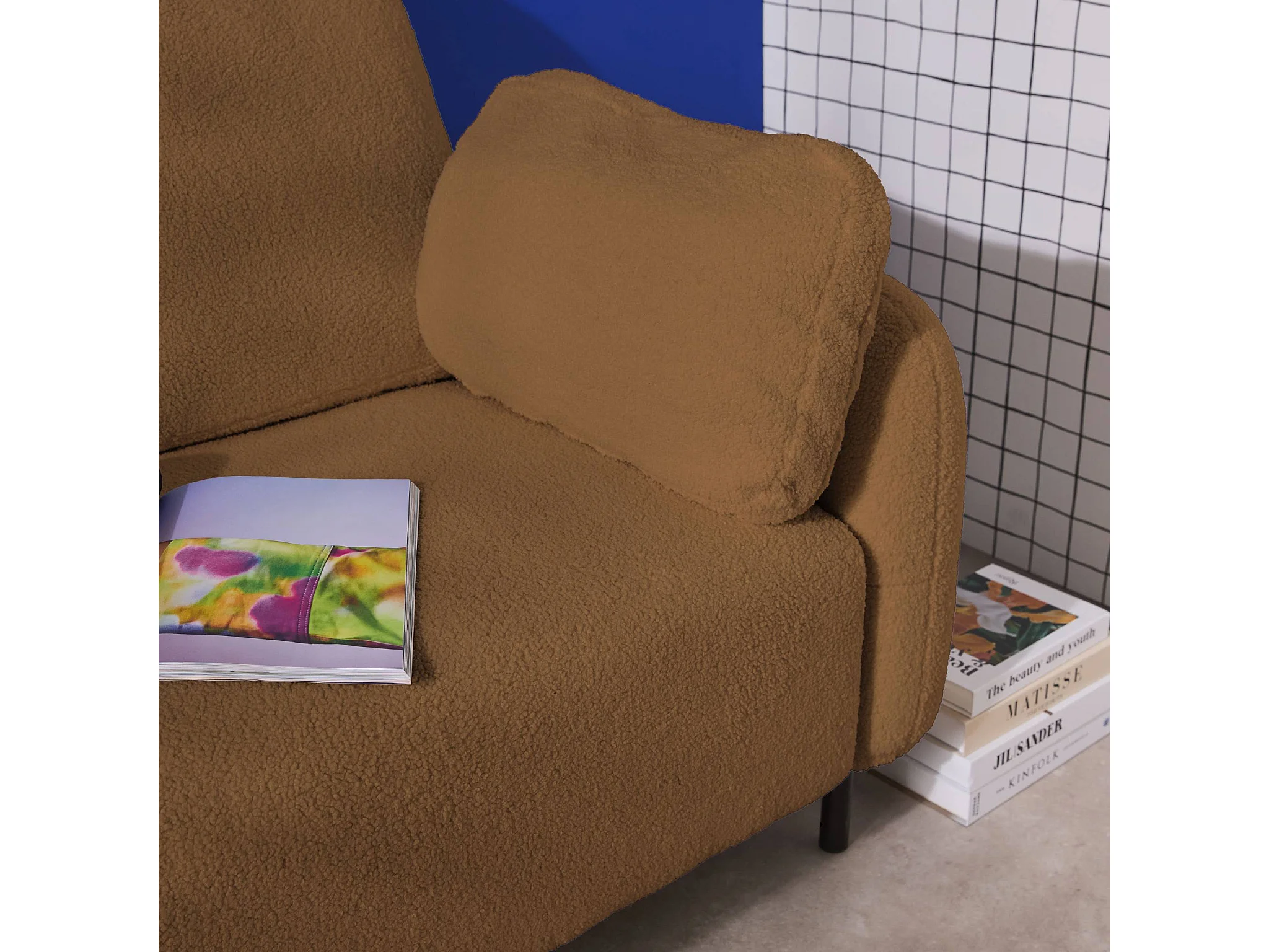 Divano in bouclé con struttura in metallo, 3 posti, beige scuro