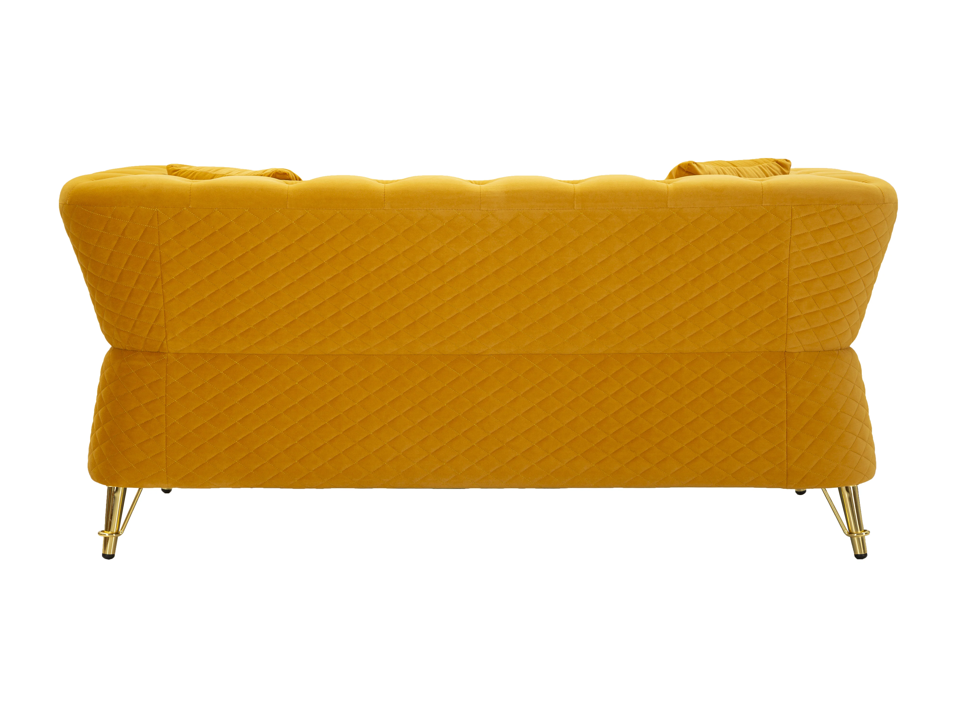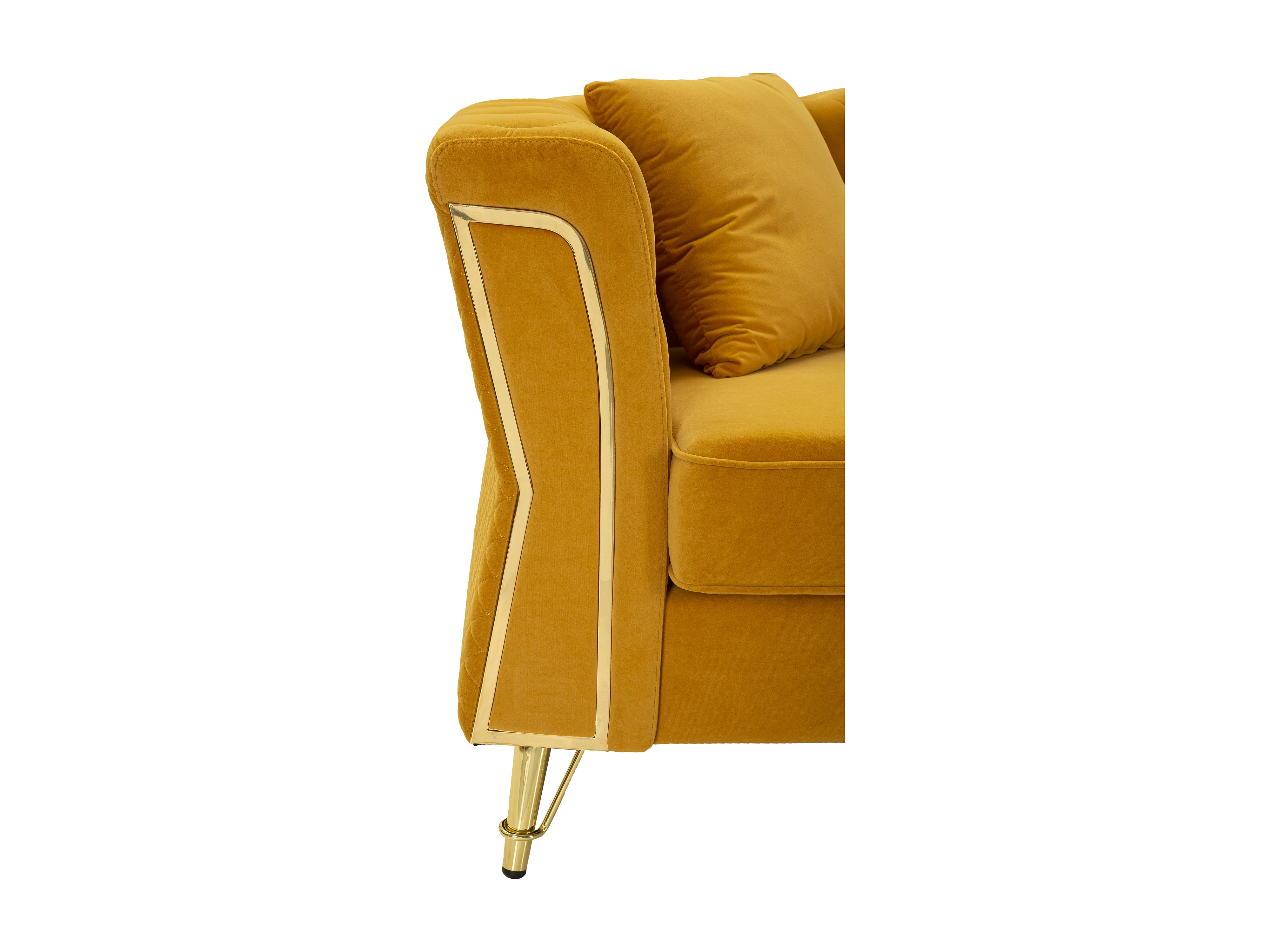 Divano in metallo e velluto senape con cuscini cm 162x83x76